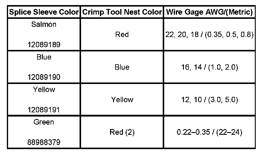 5. Select the proper DuraSeal splice sleeve according to the wire size. Refer to the table provided.