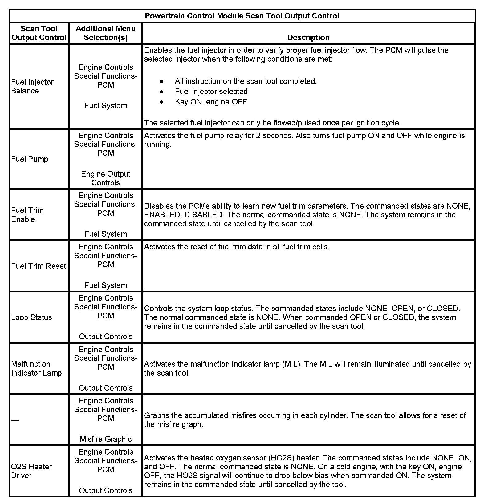 Powertrain Control Module Scan Tool Output Control (Part 2):