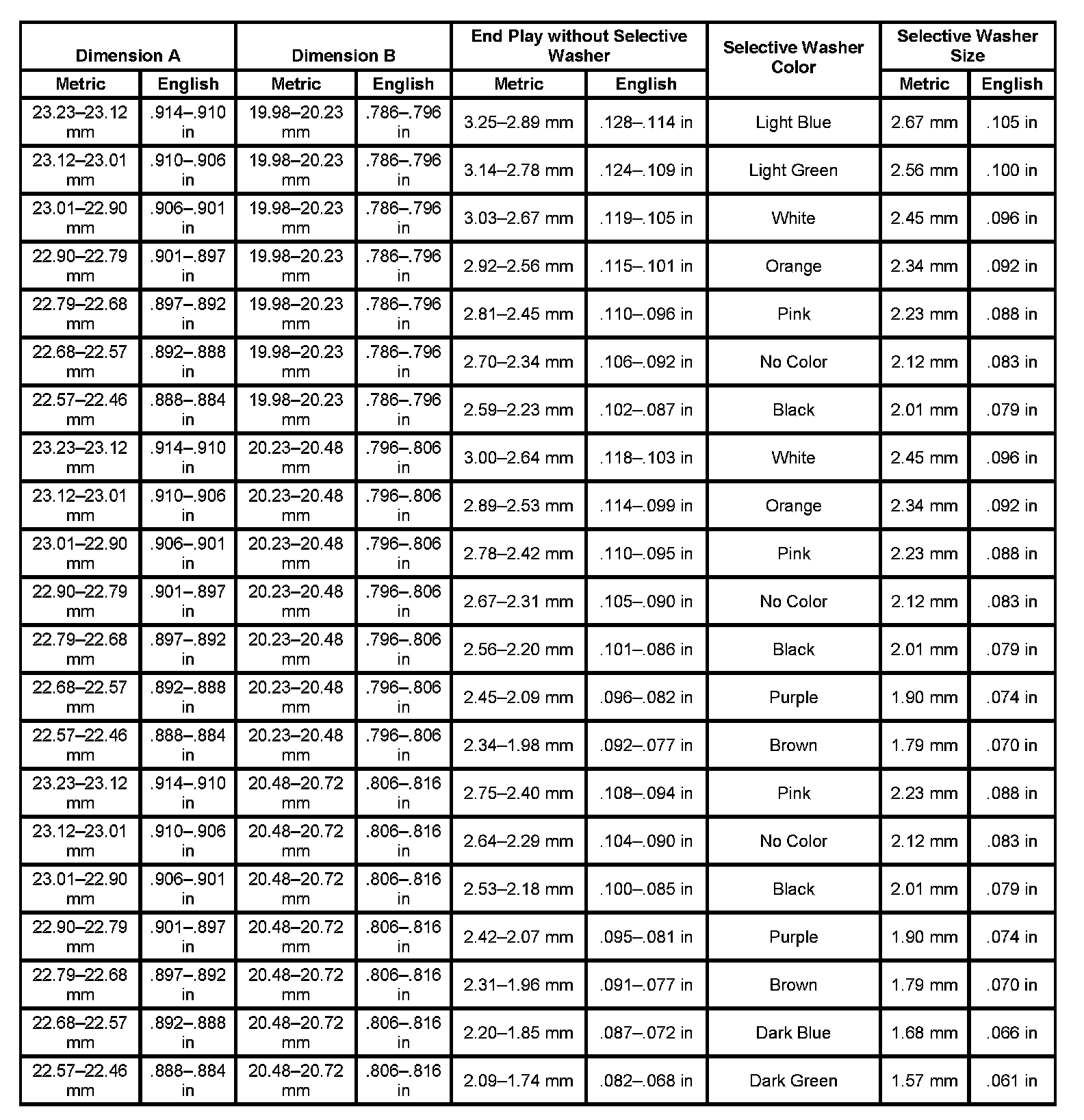 Transfer Case Selective Washer Specifications: