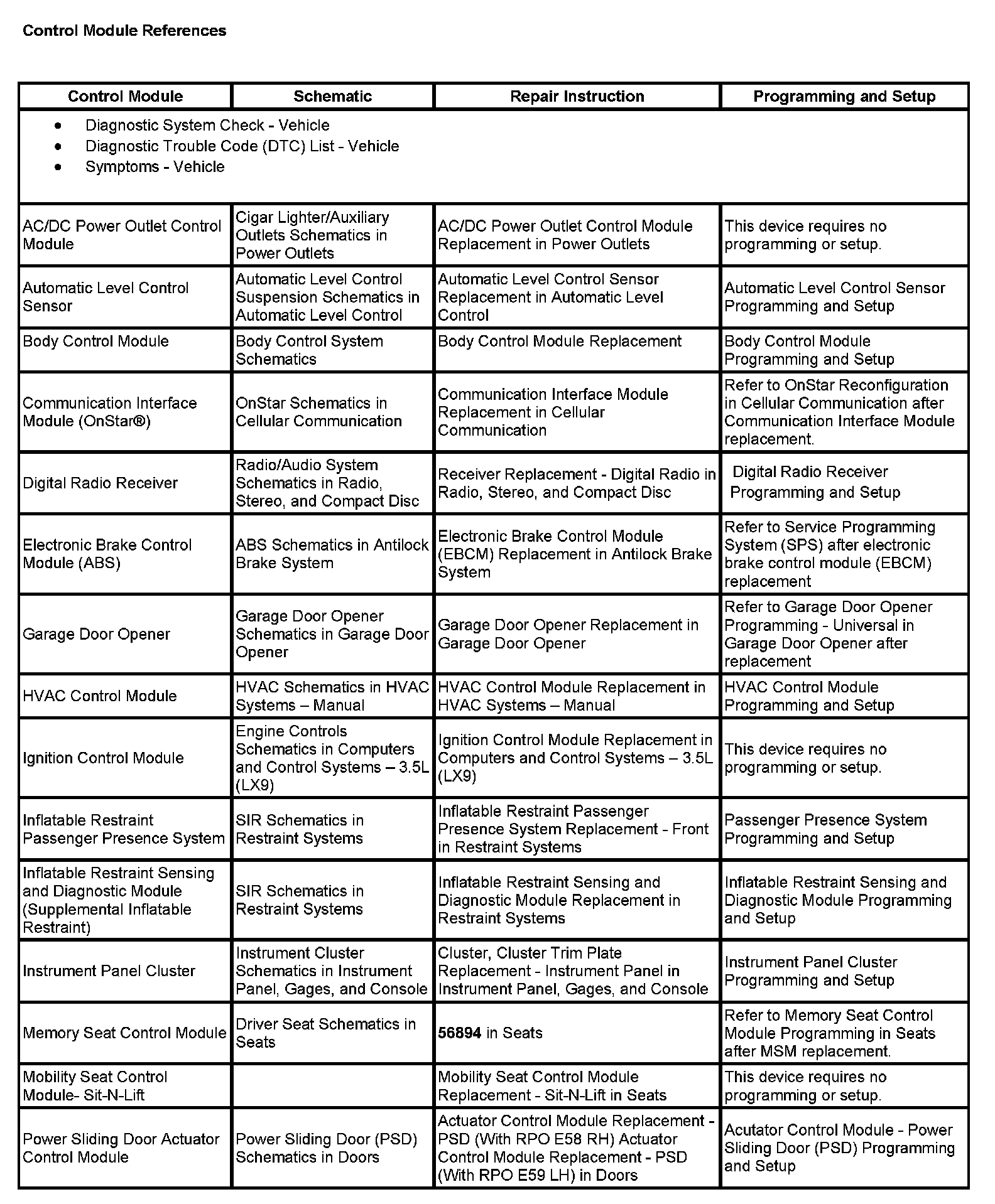 Control Module References (Part 1):