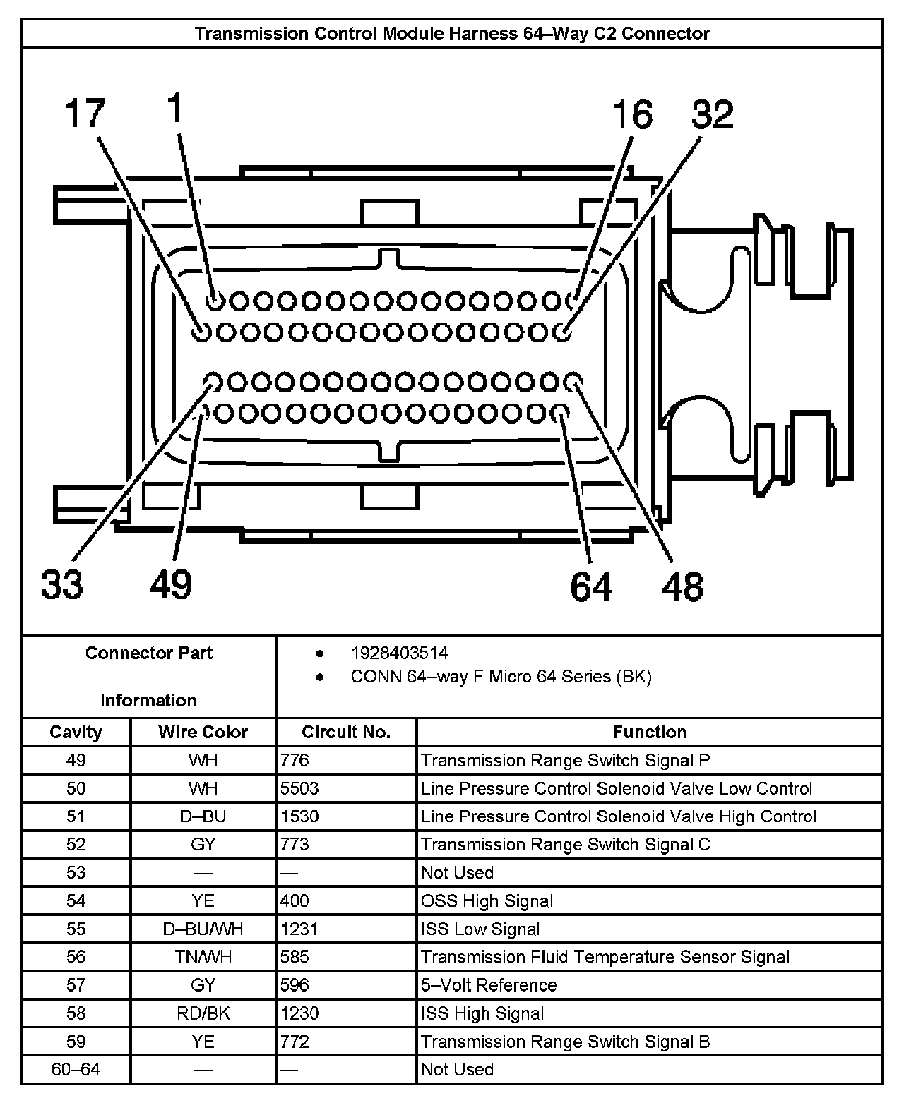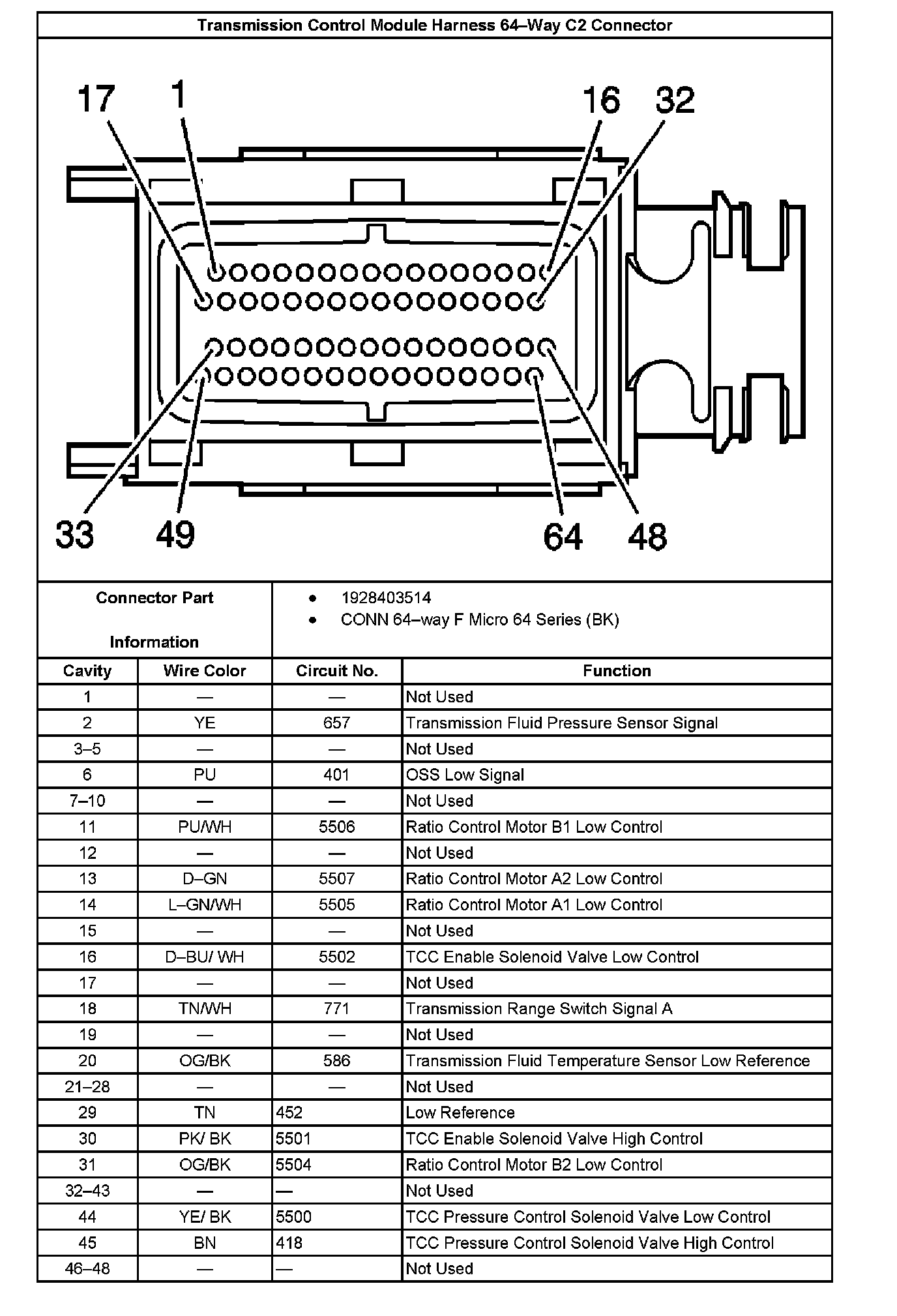 Transmission Control Module Harness 64-Way C2 Connector 2: