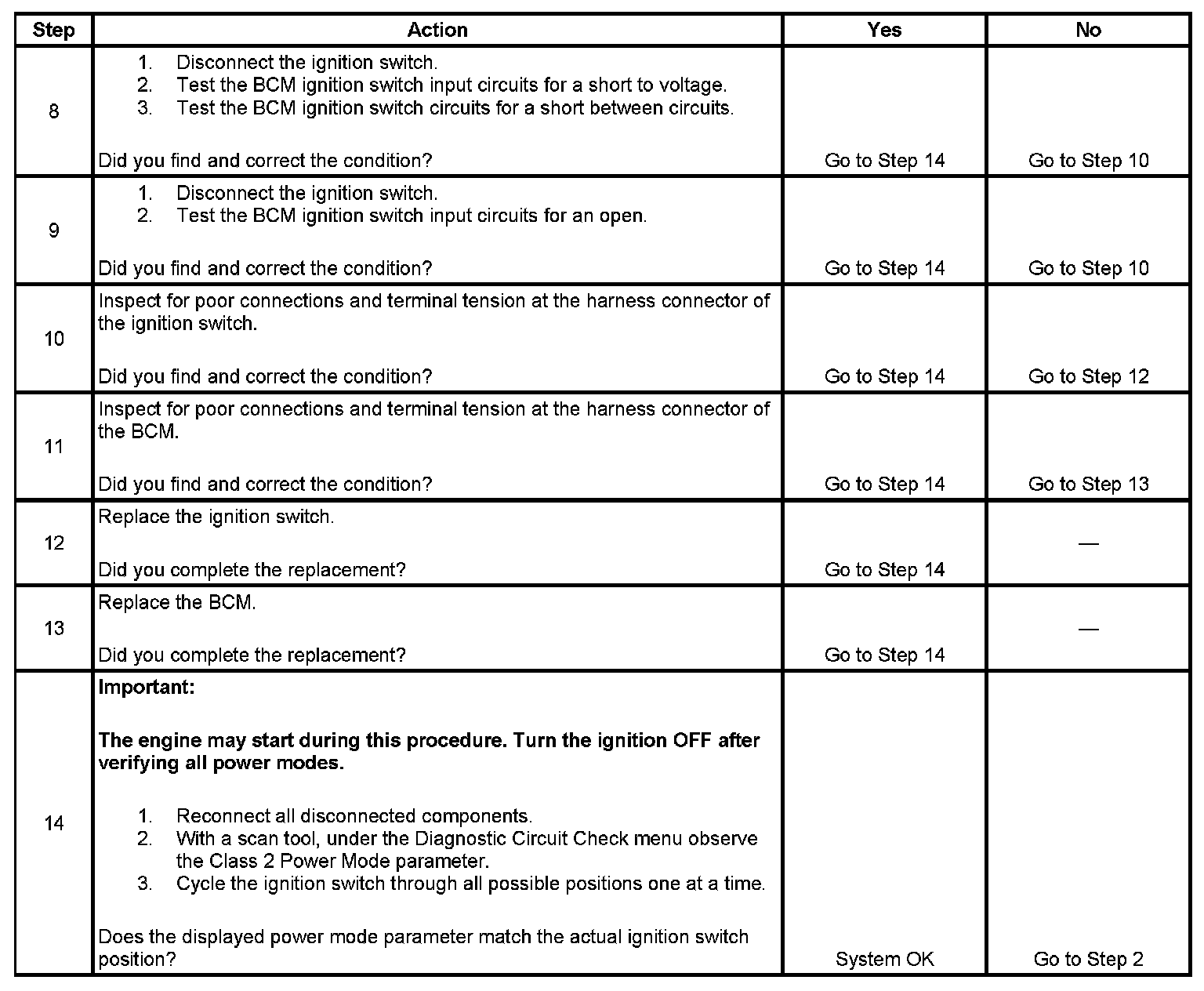 8. If any ignition switch parameters that should be inactive in the present ignition switch position are active, 2 ignition switch signal circuits may be shorted together.