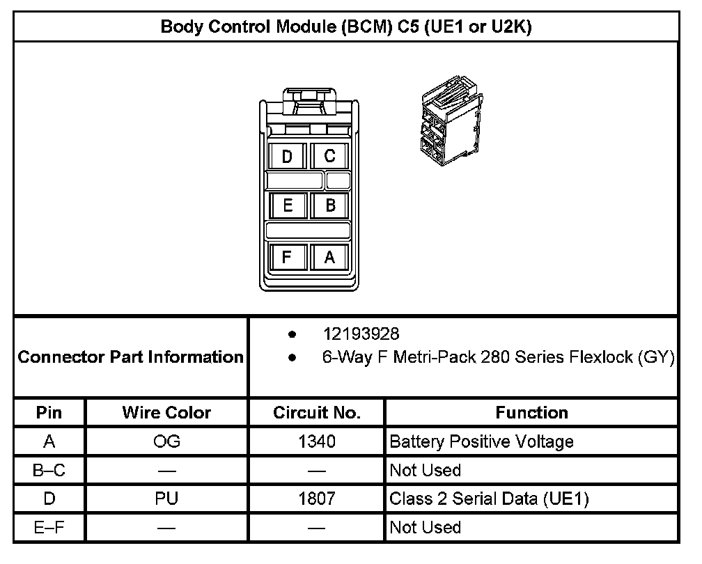 Body Control Module (BCM) C5 (With RPO Code UE1 Or U2K):