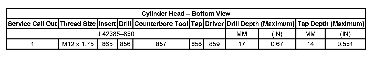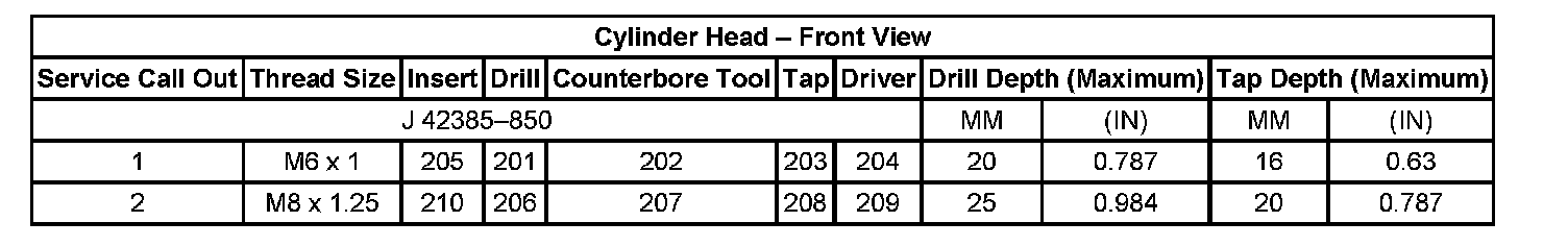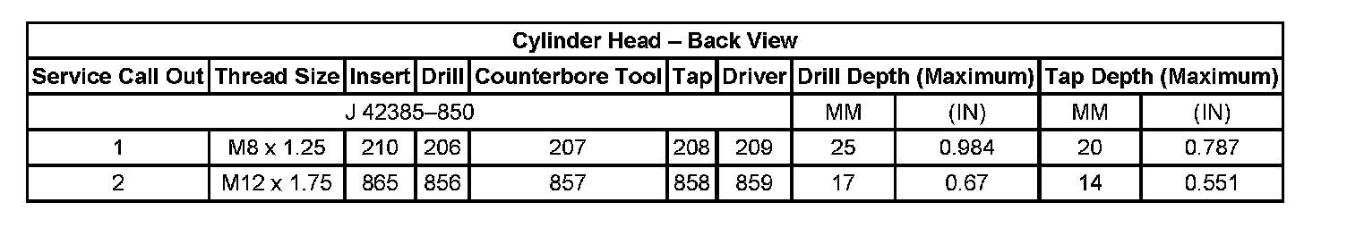 Thread Repair Specifications Cylinder Head - Top View: