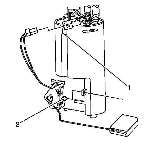 2. Release the fuel level sensor wiring harness from the molded-in tab (1) on the pump module bowl.