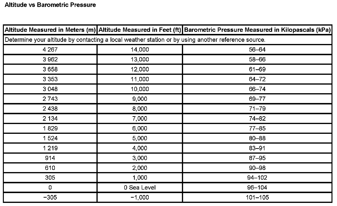 Altitude Vs Barometric Pressure: