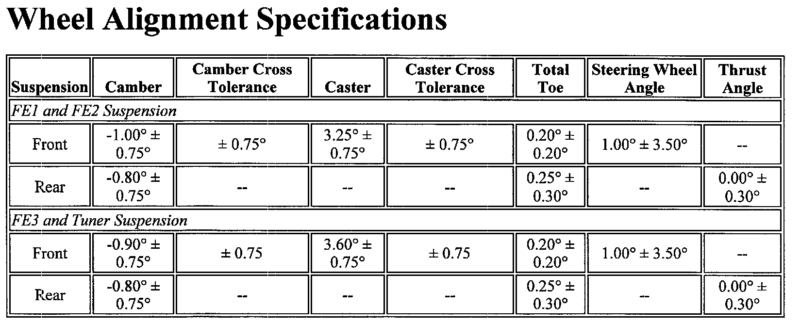 Wheel Alignment Specifications