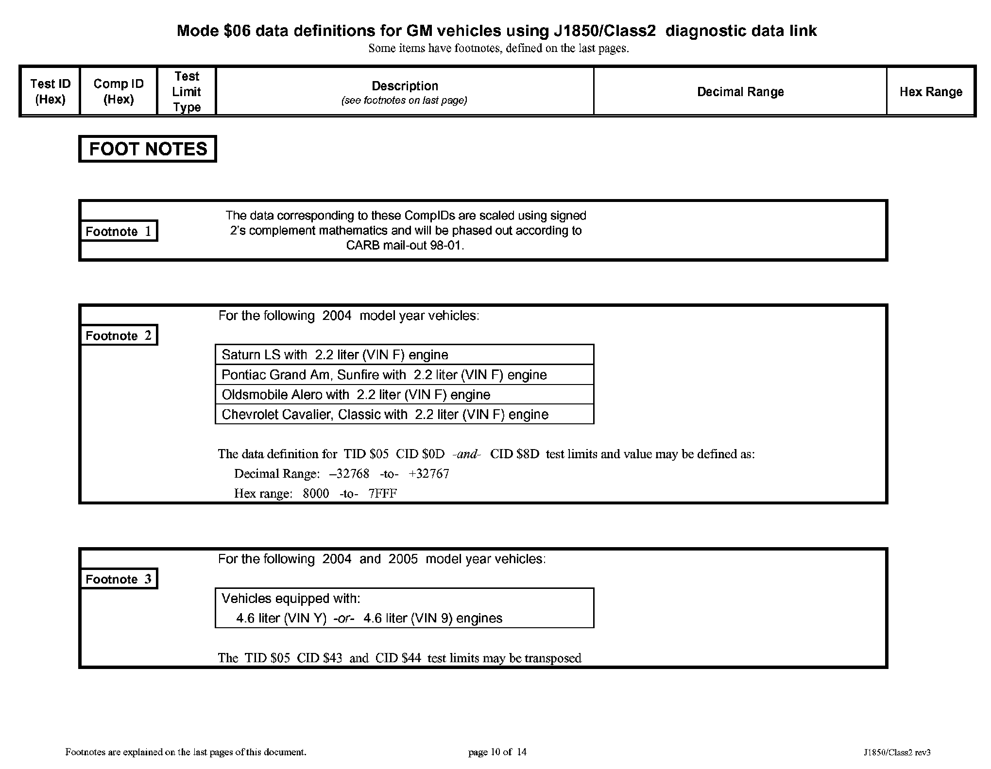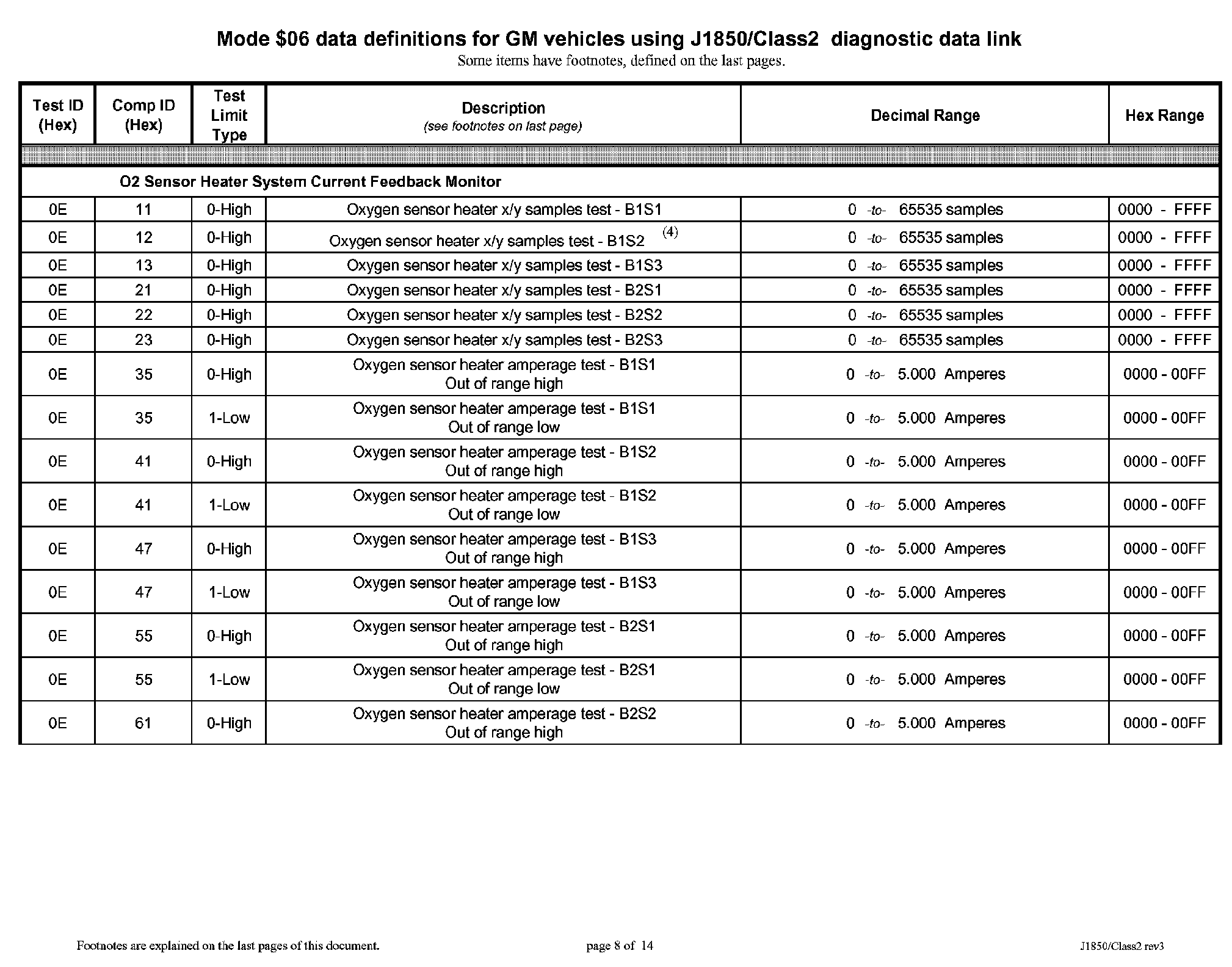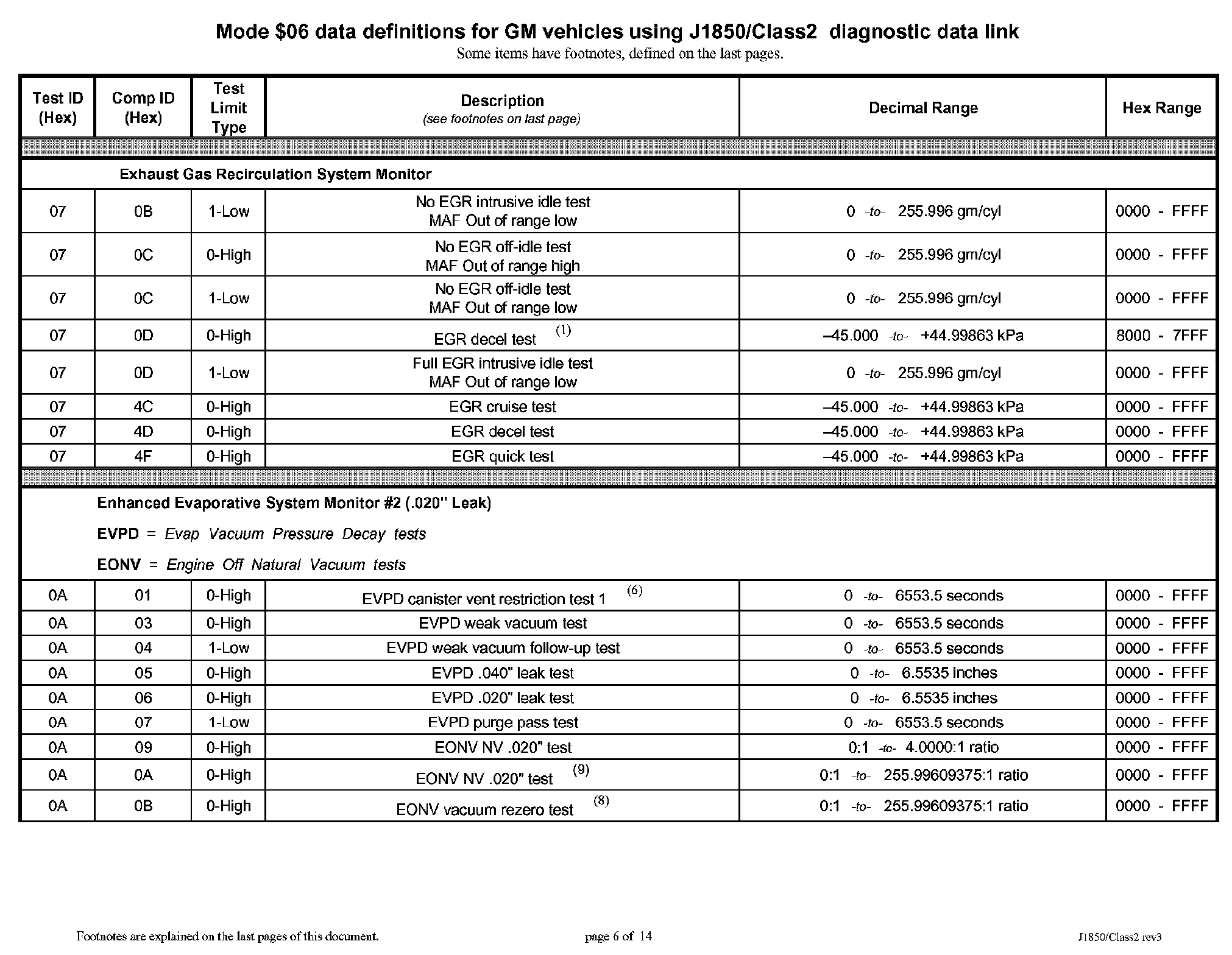 Mode $06 Data Vehicles With Class 2 Diagnostic Data Link