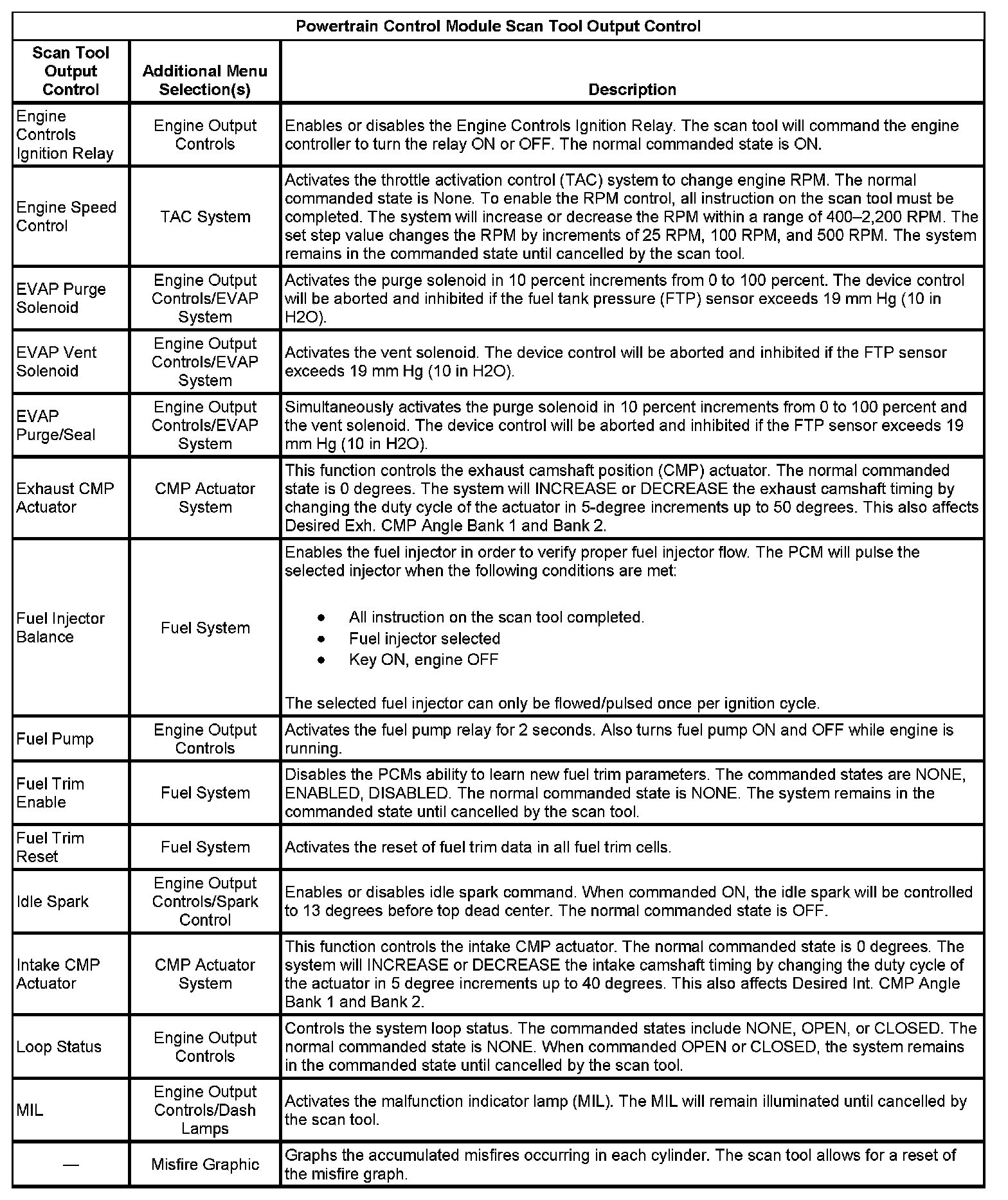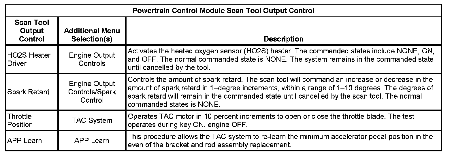 Scan Tool Output Controls