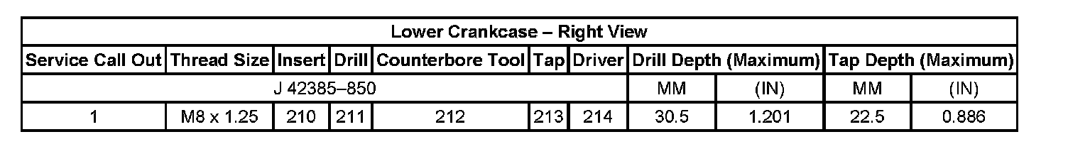 Thread Repair SpecificationsLower Crankcase - Right View: