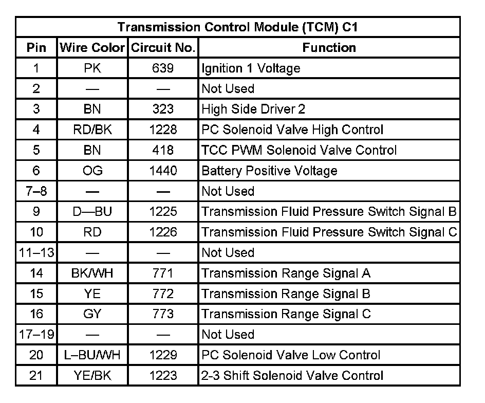 Transmission Control Module (TCM) C1: