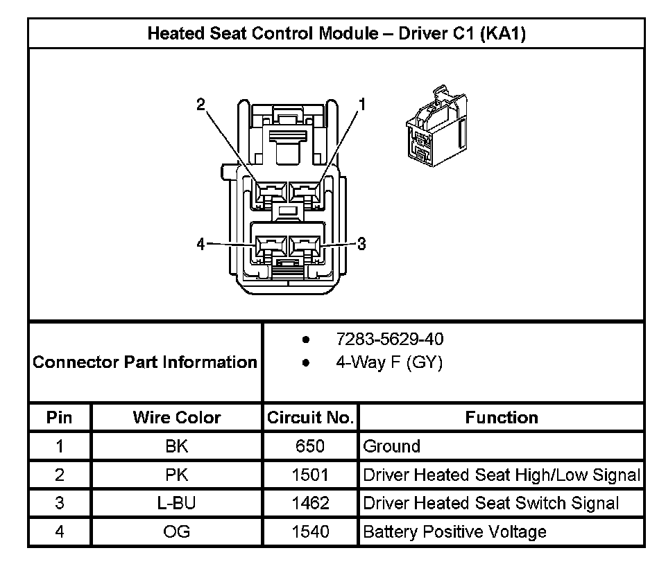 Heated Seat Control Module - Driver C1 (With RPO Code KA1):