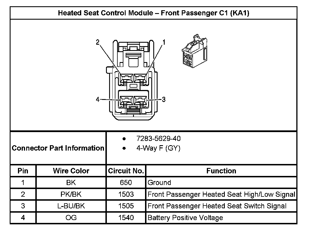 Heated Seat Control Module - Front Passenger C1 (With RPO Code KA1):