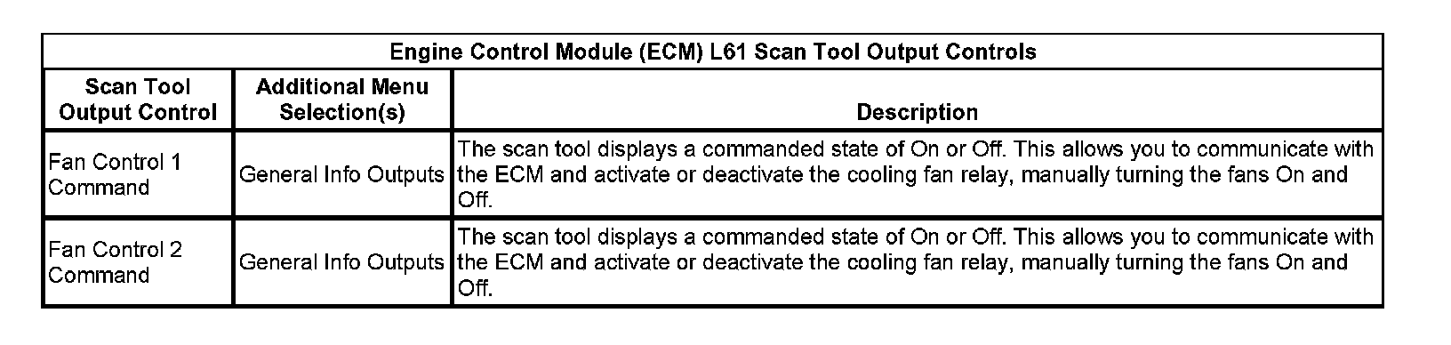 Engine Control Module (ECM) L61 Scan Tool Output Controls