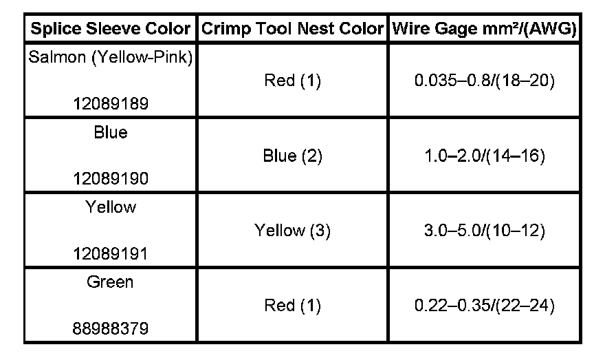4. Select the proper DuraSeal splice sleeve according to the wire size. Refer to the above table at the beginning of the repair procedure for the color coding of the DuraSeal splice sleeves and the crimp tool nests.