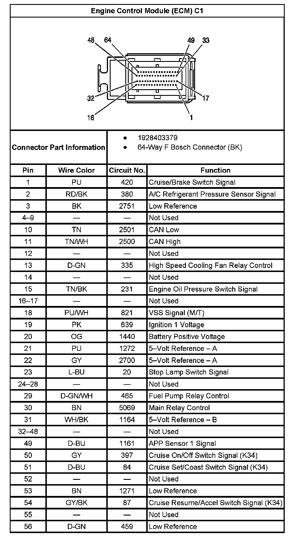 Engine Control Module (ECM) C1 (Part 1):