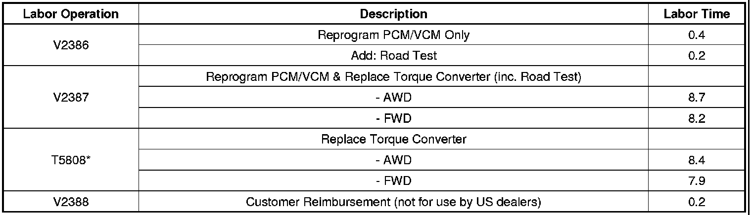 * Labor code T5808 is to be used if the customer had the reprogram performed and the vehicle exhibits a judder condition within 6 months. Wholesale authorization is required when submitting the transaction.