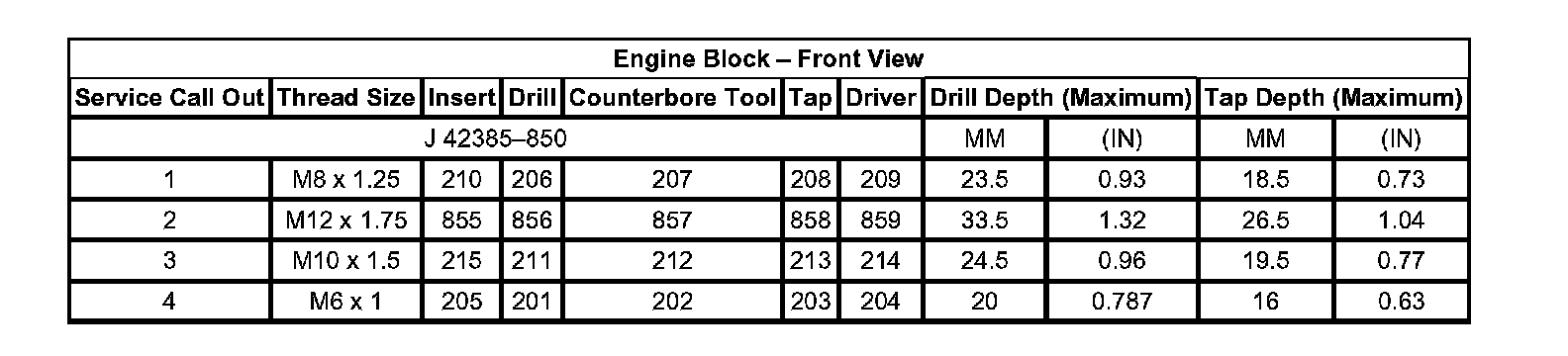 Home >> Saturn >> 2006 >> VUE 2WD L4-2.2L VIN D >> Repair and Diagnosis >> Specifications >> Mechanical Specifications >> Engine >> System Specifications >> Thread Repair Specifications