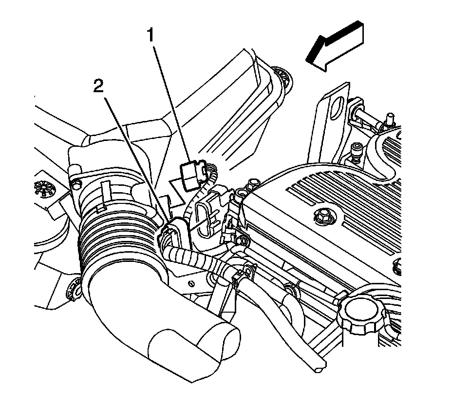2. Disconnect the engine wiring harness electrical connector (1) from the mass airflow (MAF)/intake air temperature (IAT) sensor.