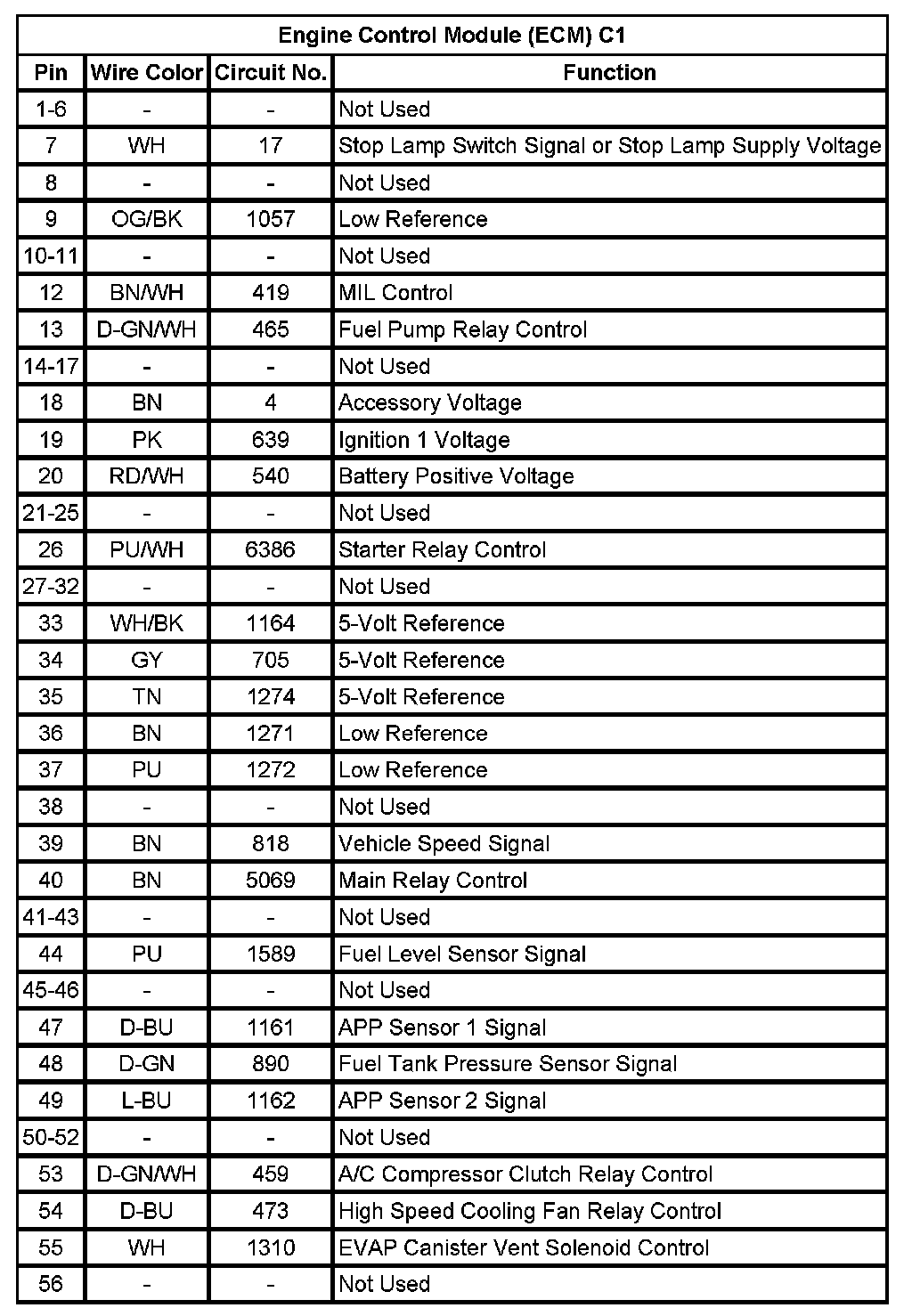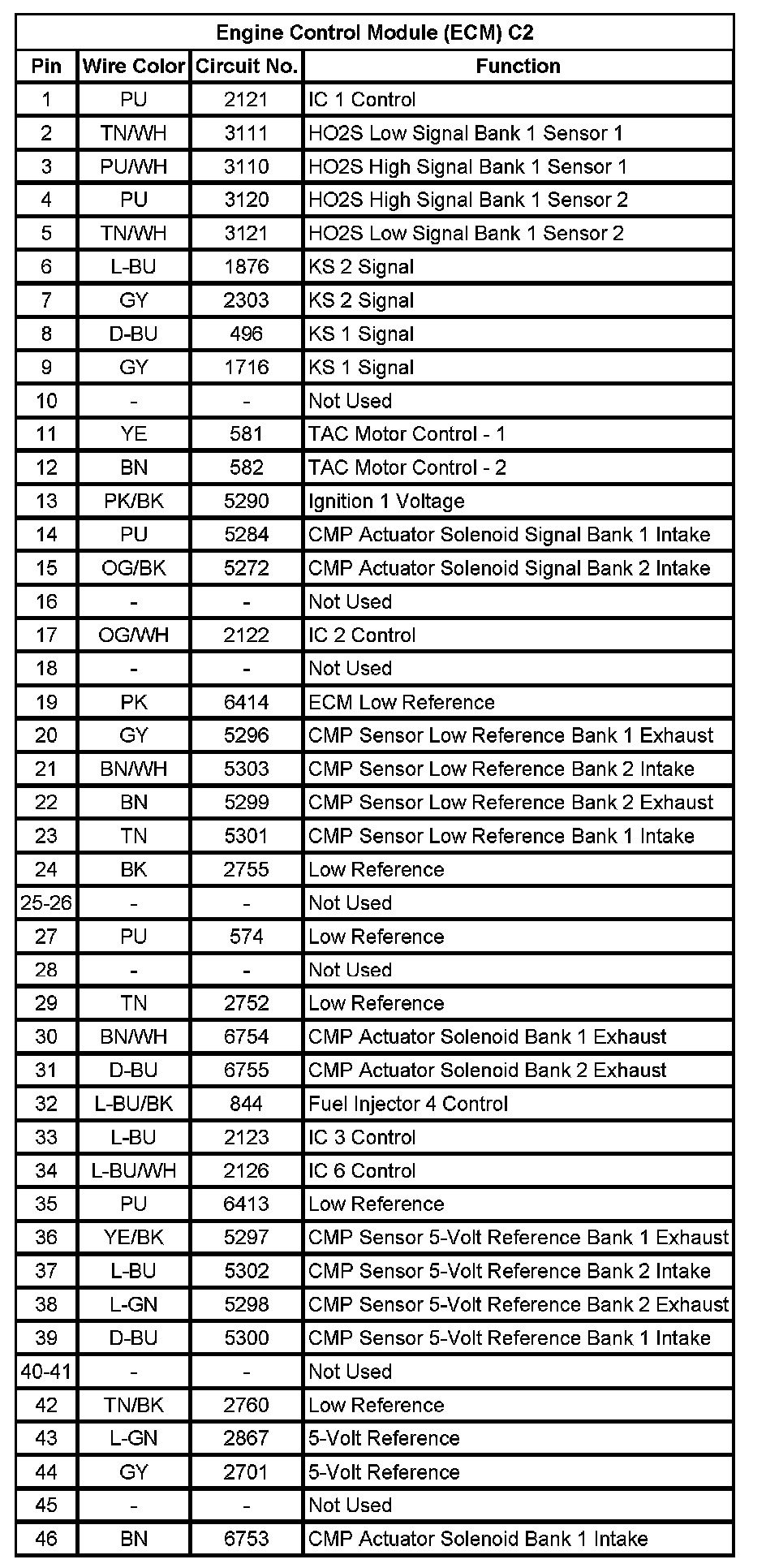 Engine Control Module (ECM) C2 (Pin 1 To 46):