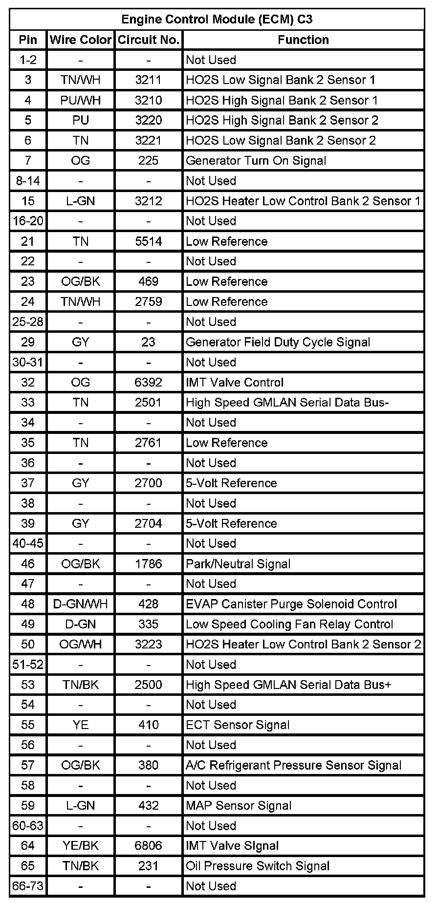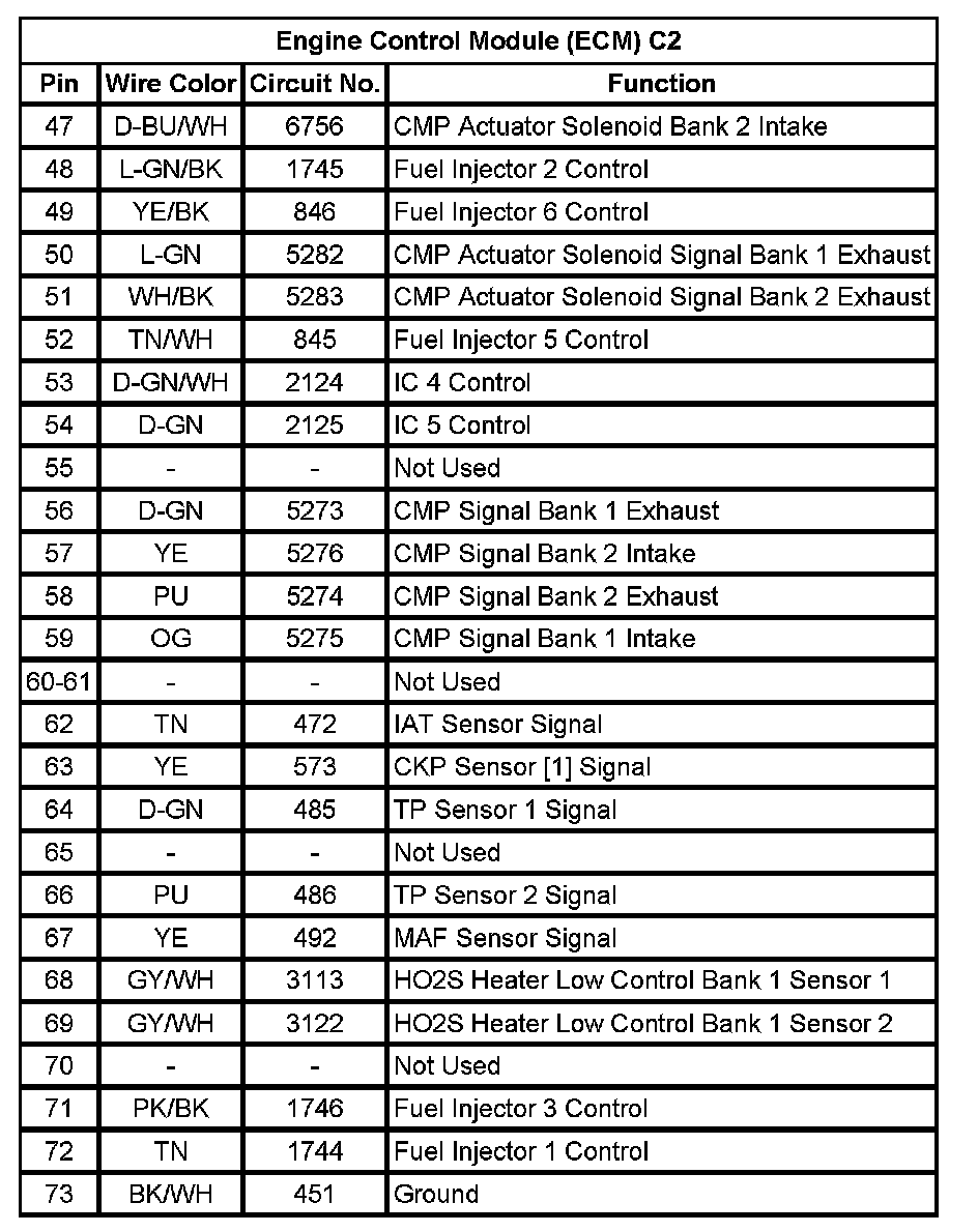 Engine Control Module (ECM) C2 (Pin 47 To 73):