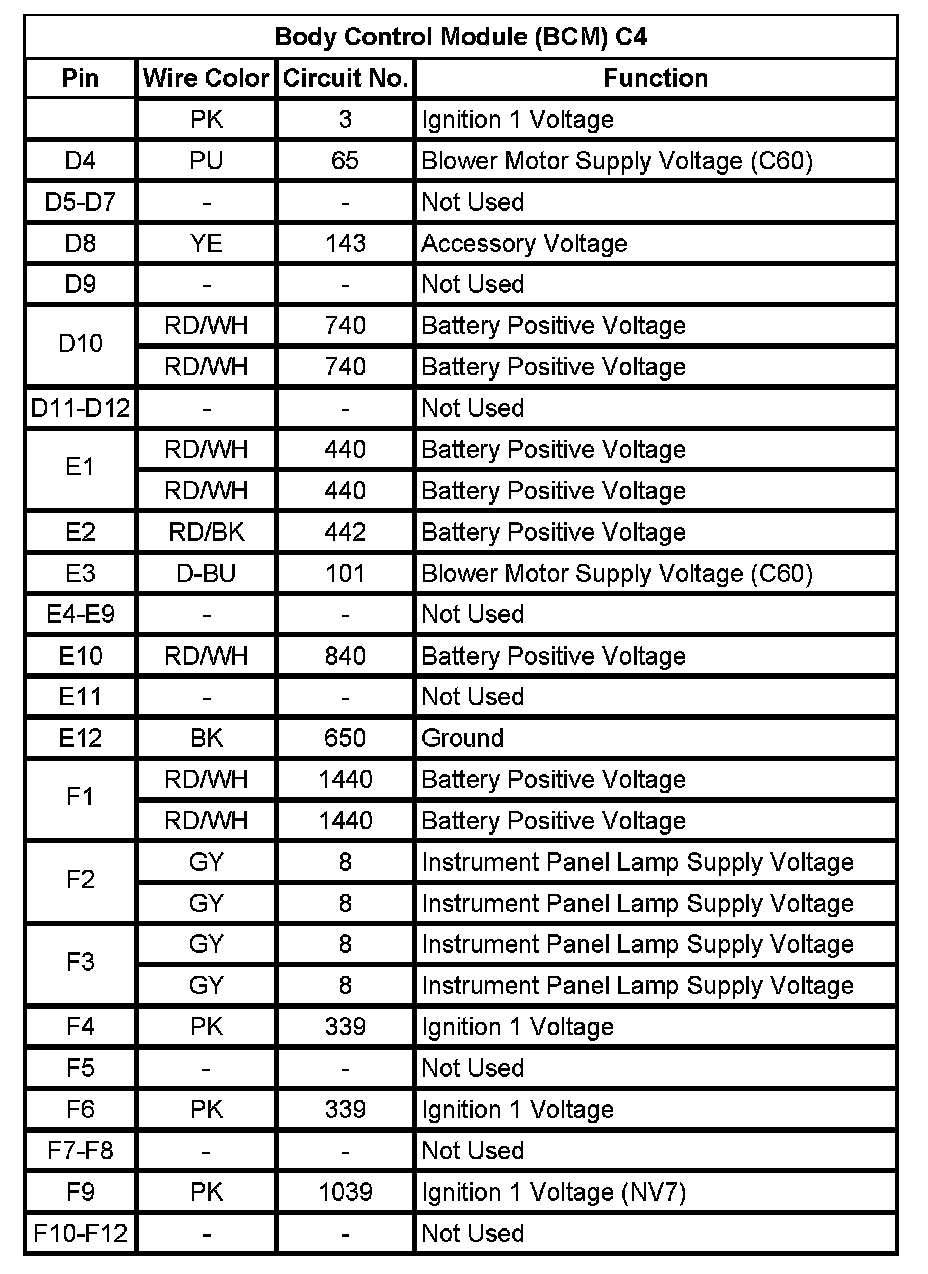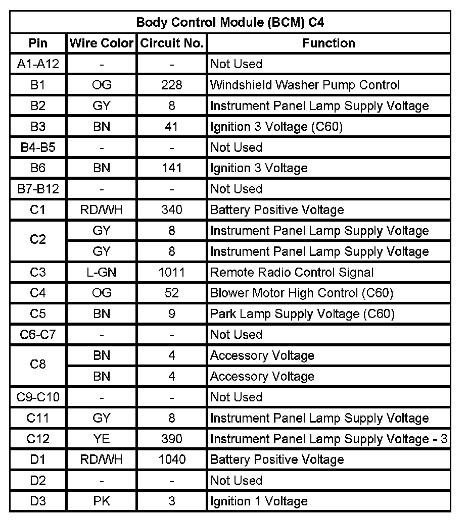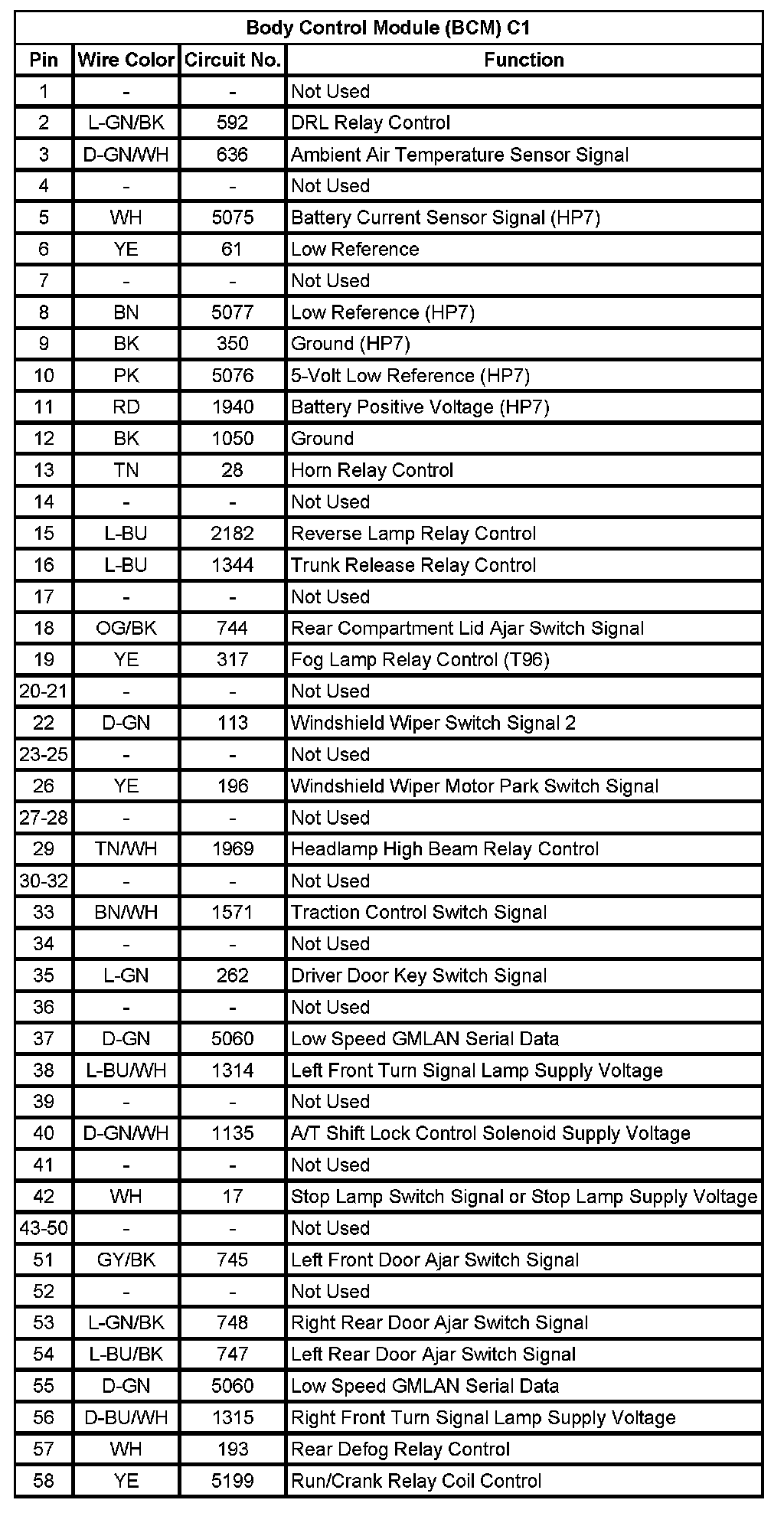 Body Control Module (BCM) C1 (Pin 1 To 58):