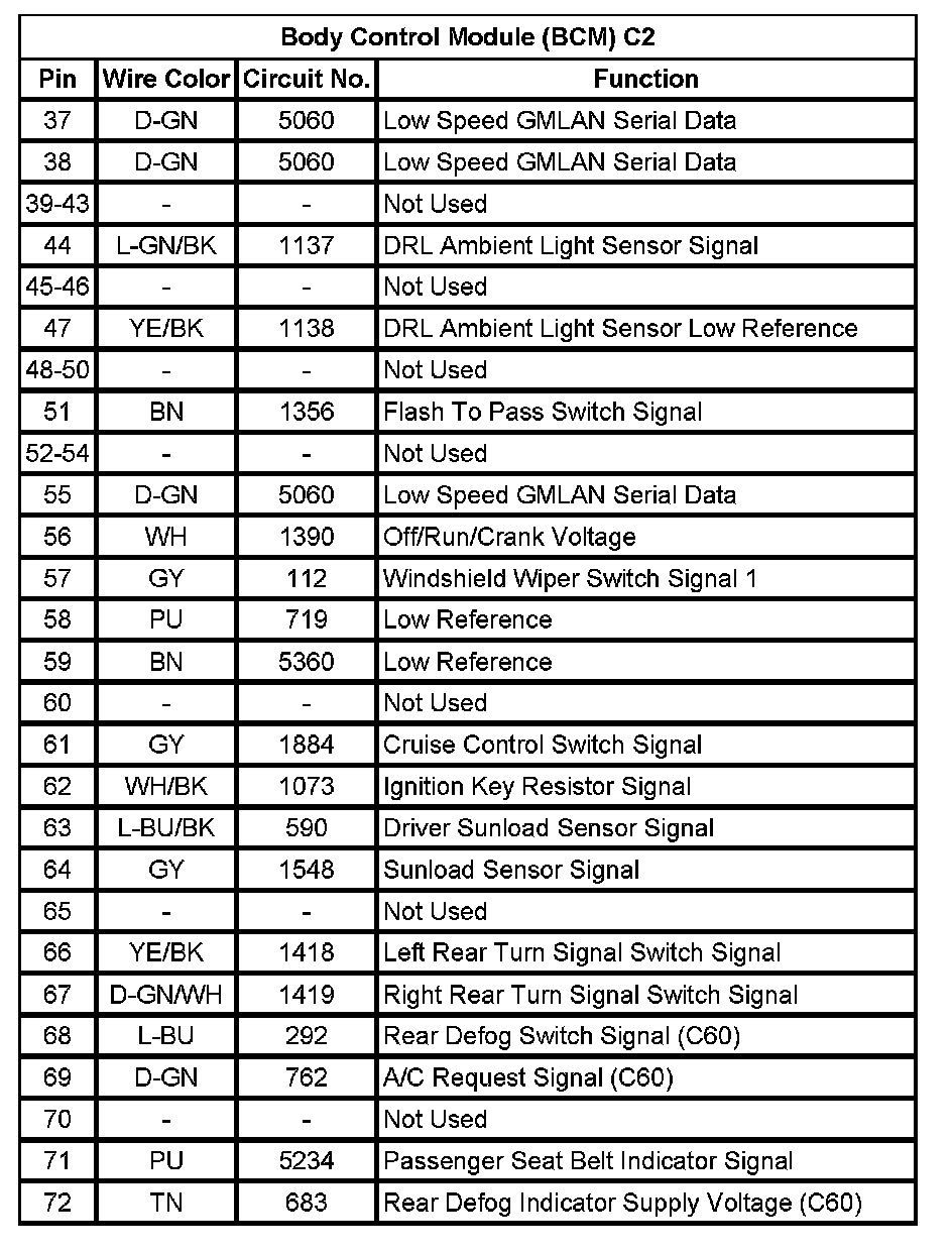 Body Control Module (BCM) C2 (Pin 37 To 72):