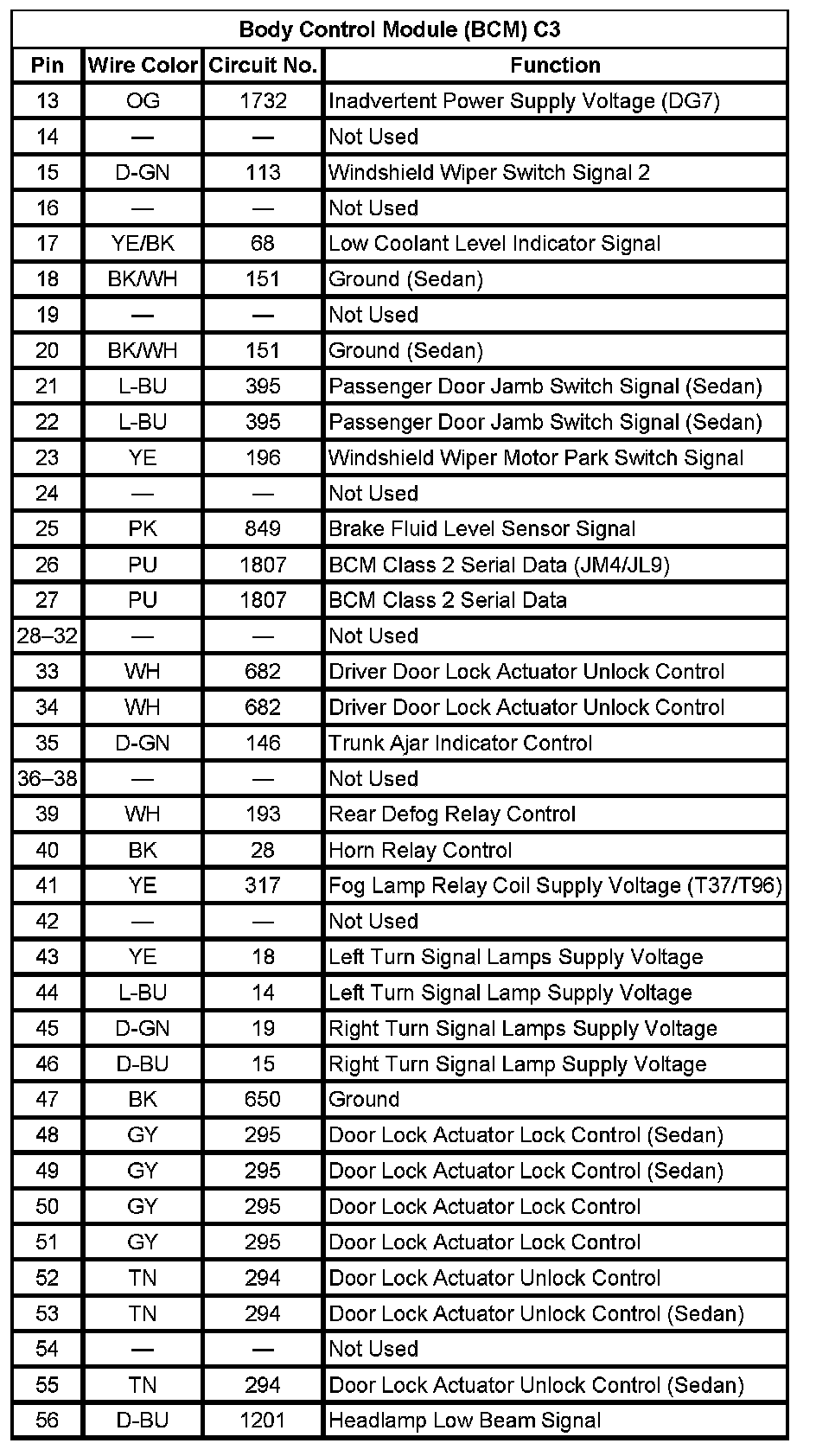 Body Control Module (BCM) C3 (Pin 13 To 56):