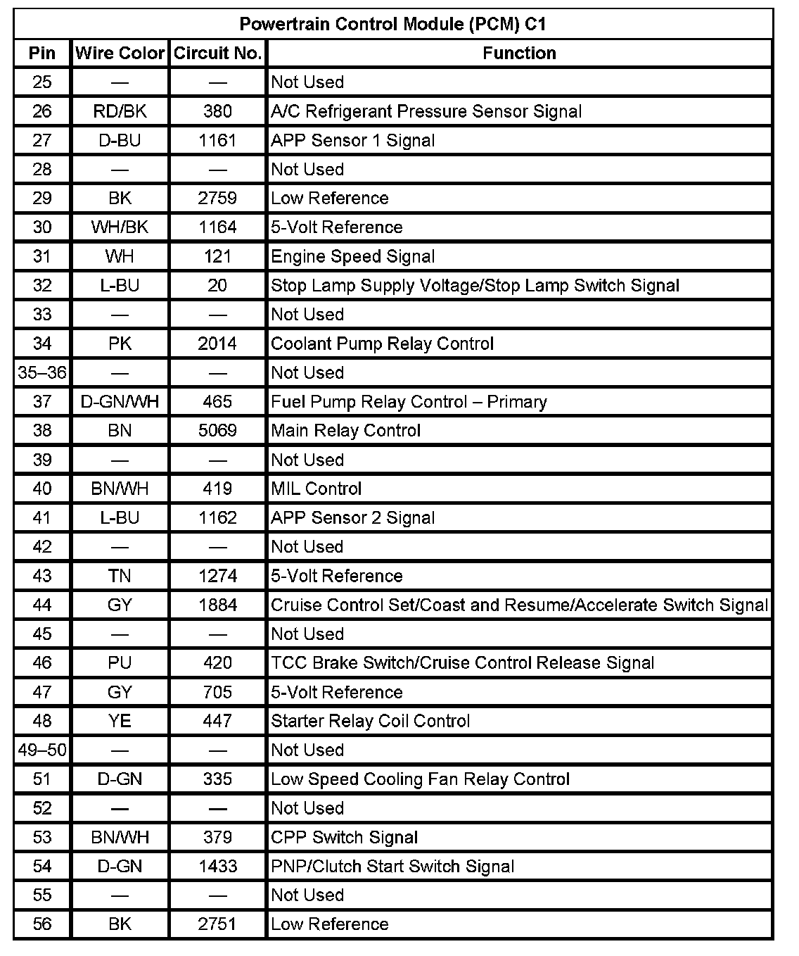 Powertrain Control Module (PCM) C1 (Pin 25 To 56):
