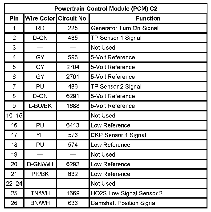 Powertrain Control Module (PCM) C2 (Pin 1 To 26):