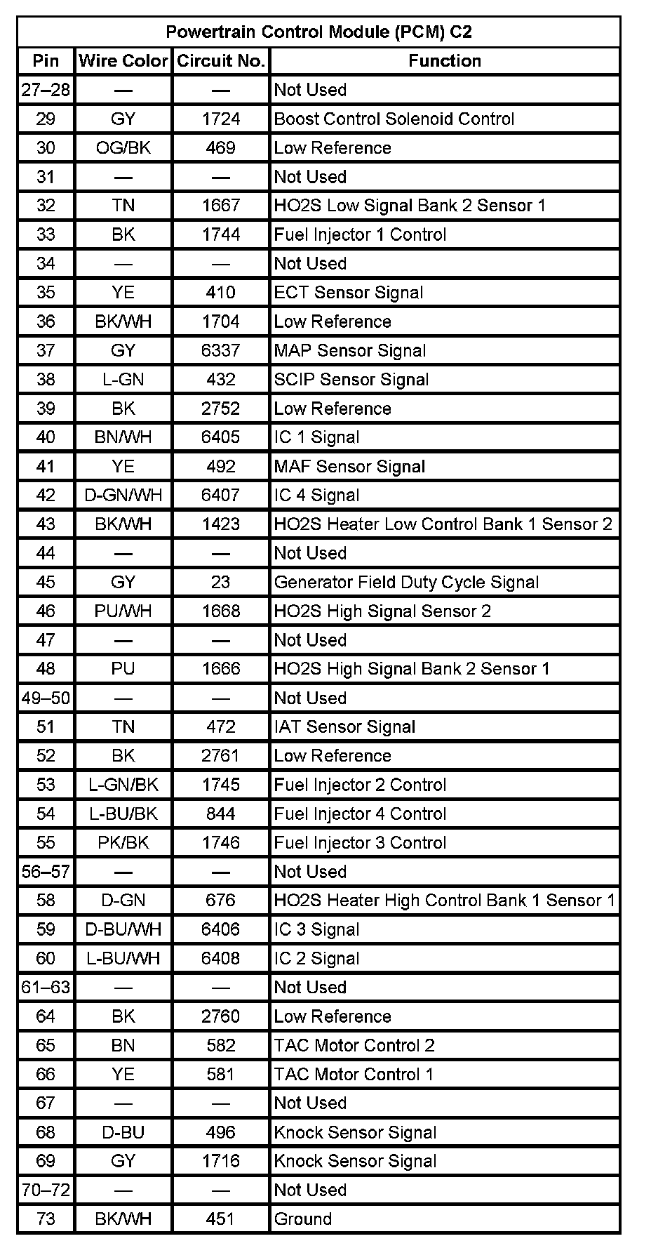 Powertrain Control Module (PCM) C2 (Pin 27 To 73):
