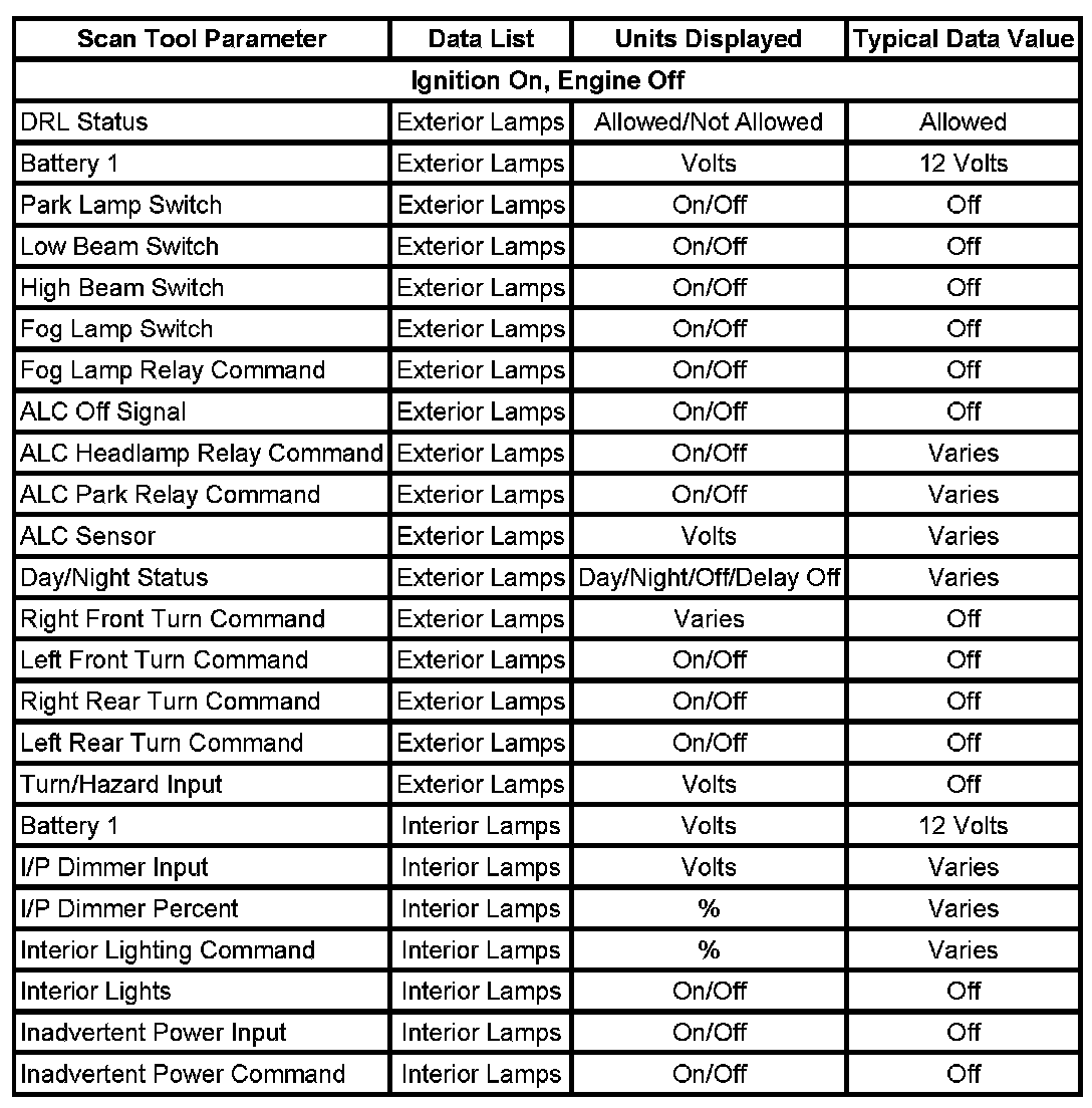 Scan Tool Data List