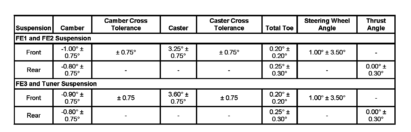 Wheel Alignment Specifications