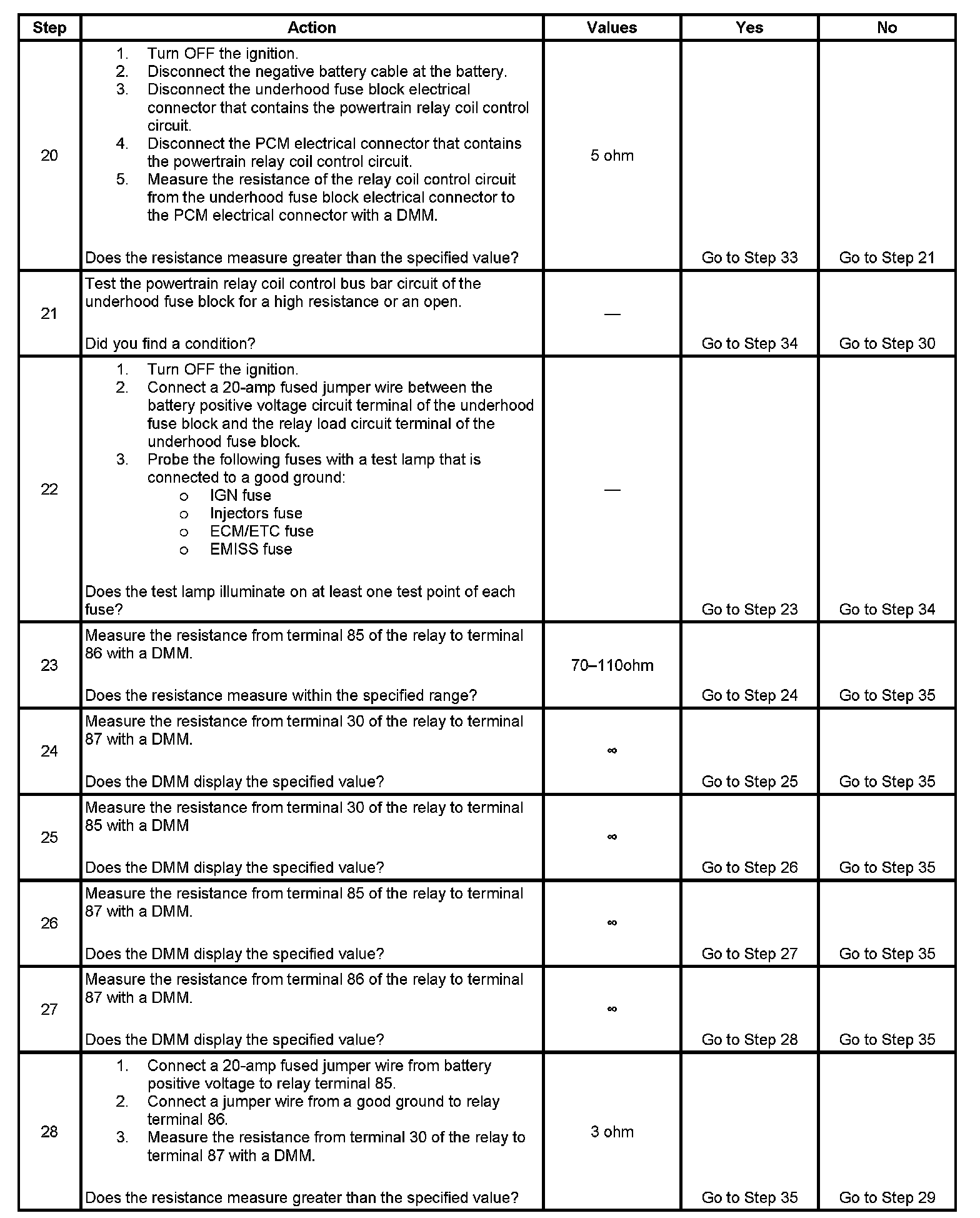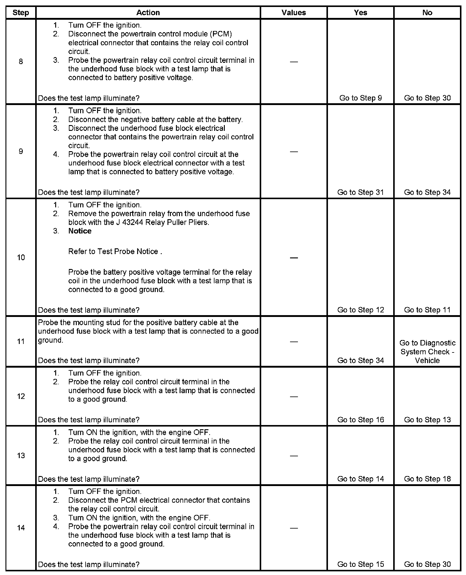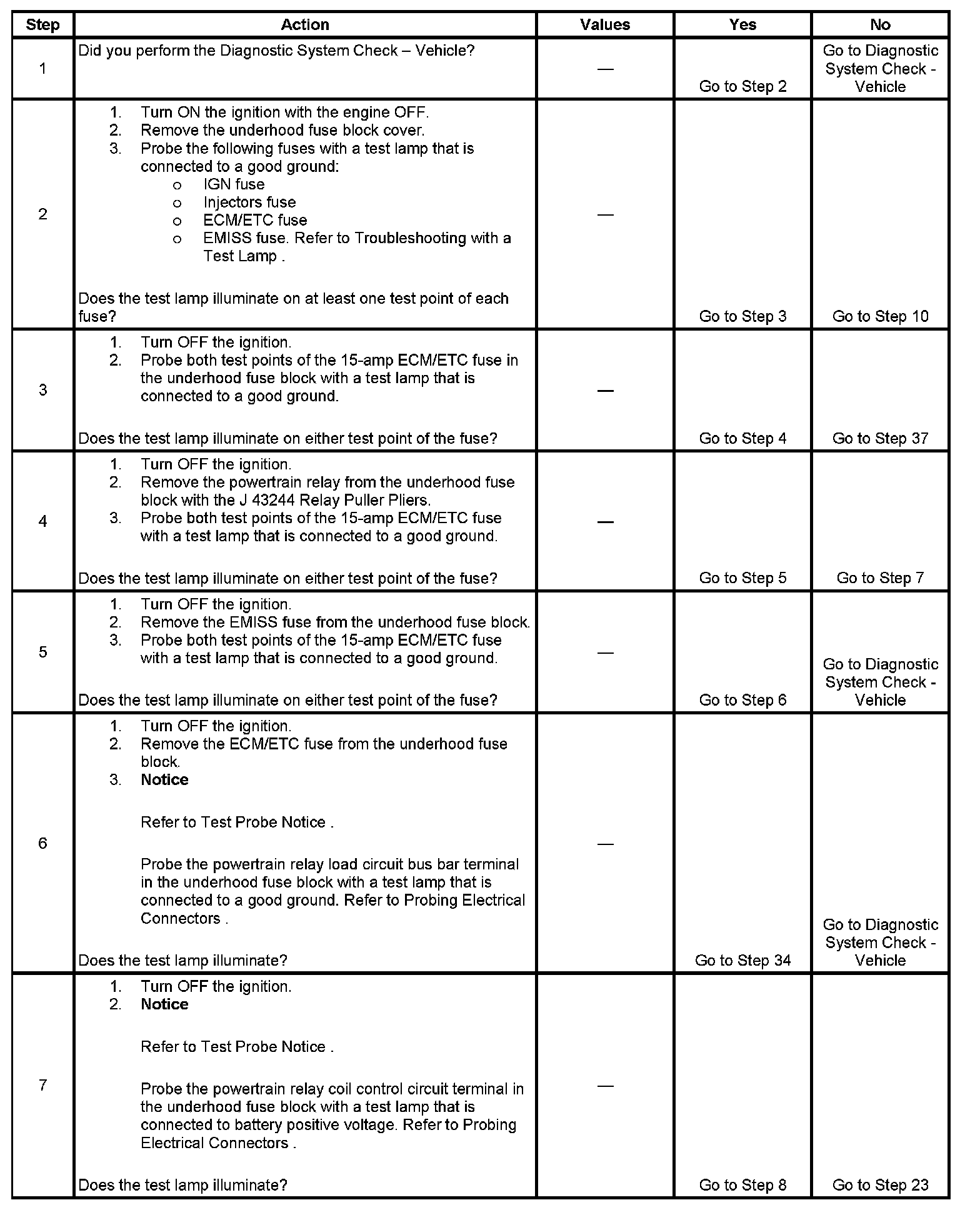The powertrain relay system diagnosis table assumes that the vehicle battery is fully charged. Refer to Battery Inspection/Test. Battery Inspection/Test