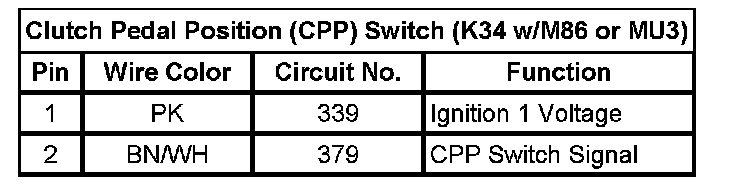 Clutch Pedal Position (CPP) Switch (K34 w/M86 or MU3)