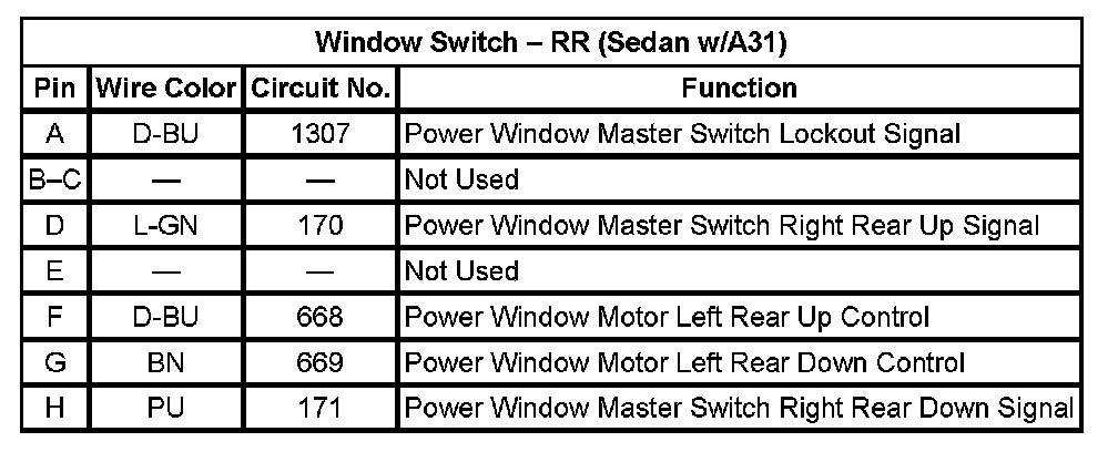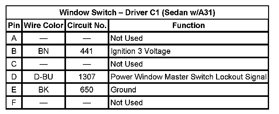 Window Switch - Driver C2 (Sedan With RPO Code A31)