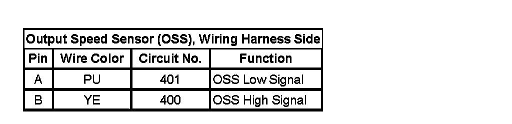 Output Speed Sensor (OSS), Wiring Harness Side: