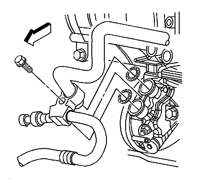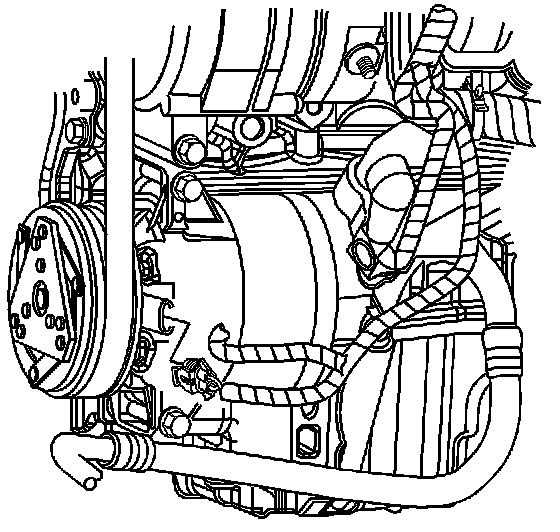 7. Remove the compressor and condenser hose assembly bolt from the compressor.