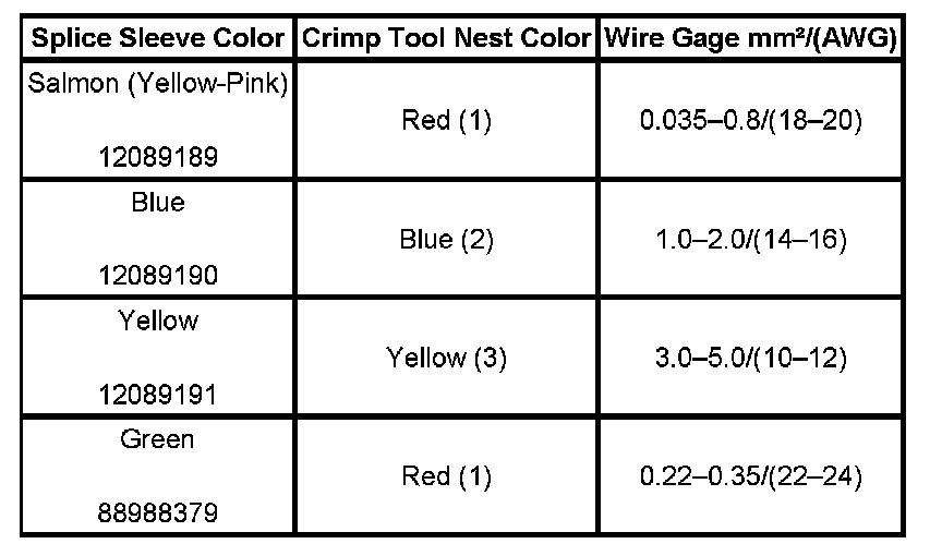 4. Select the proper DuraSeal splice sleeve according to the wire size. Refer to the above table at the beginning of the repair procedure for the color coding of the DuraSeal splice sleeves and the crimp tool nests.