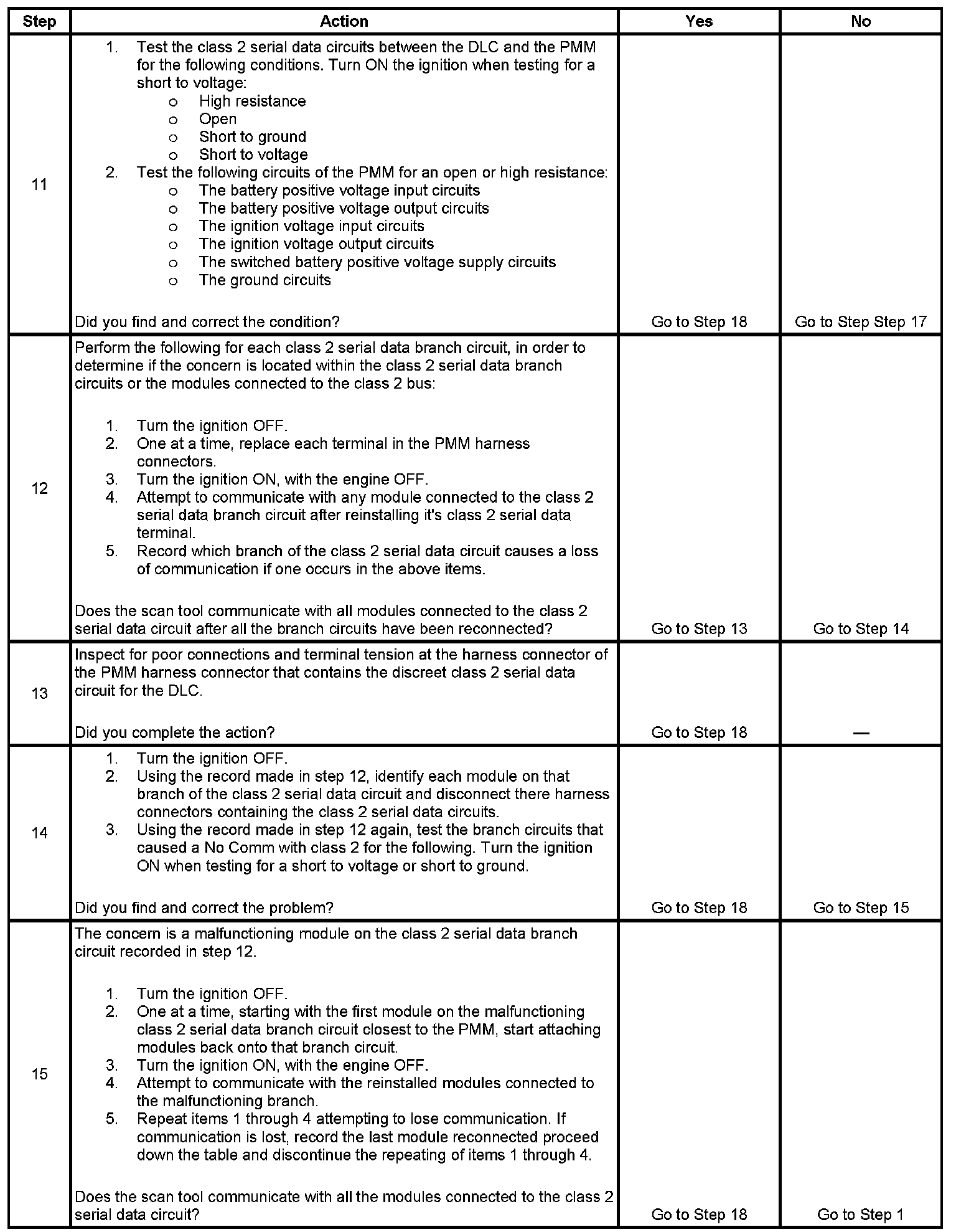 10. Normal class 2 serial data communication cannot take place until the power mode master (PMM) module sends the appropriate power mode message. If the PMM does not send a wake-up message, other modules on the class 2 serial data circuit may not communicate.