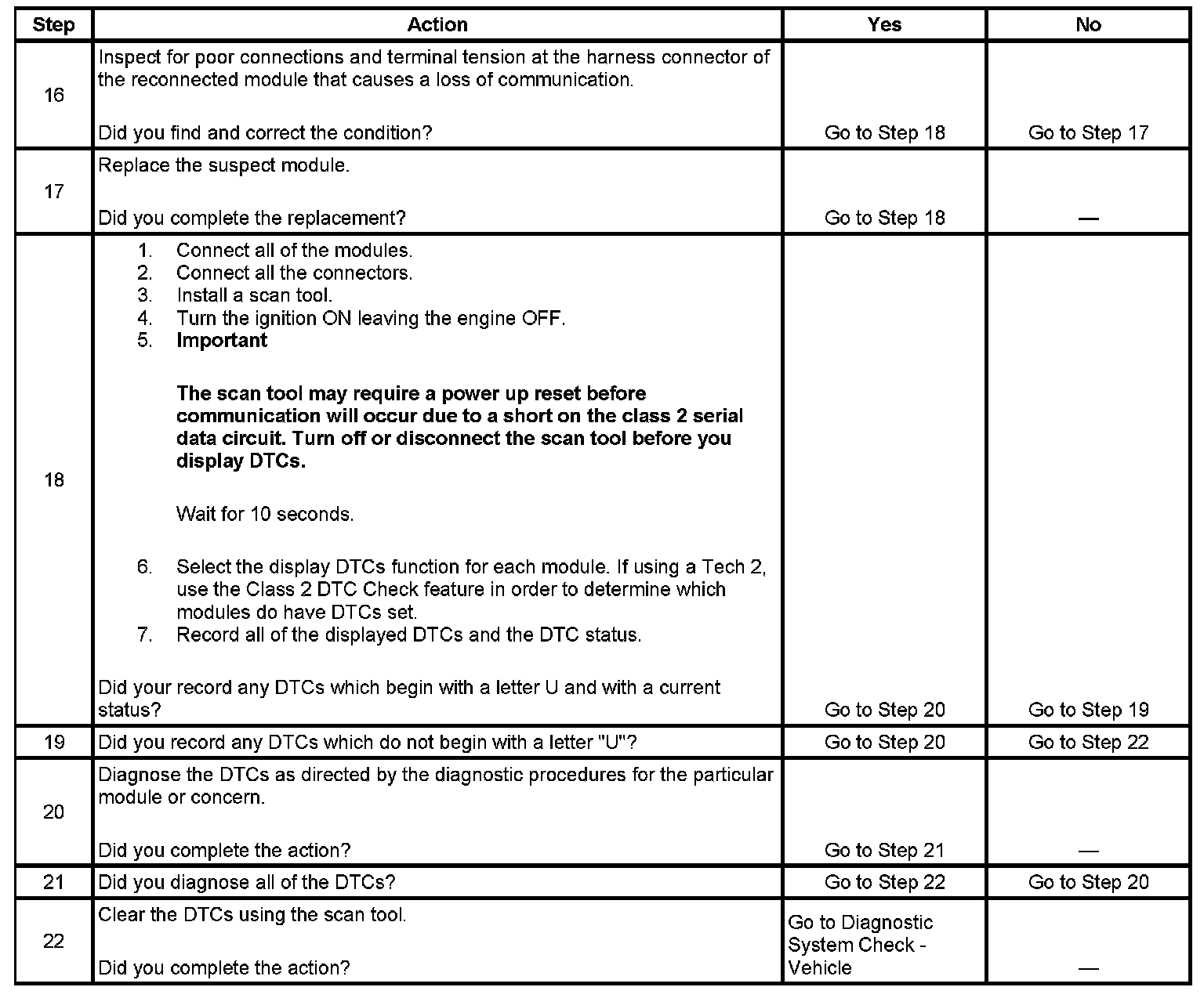 2. A partial loss of communication in the class 2 serial data circuit uses a different procedure than a total loss of communication of the class 2 serial data circuit.
