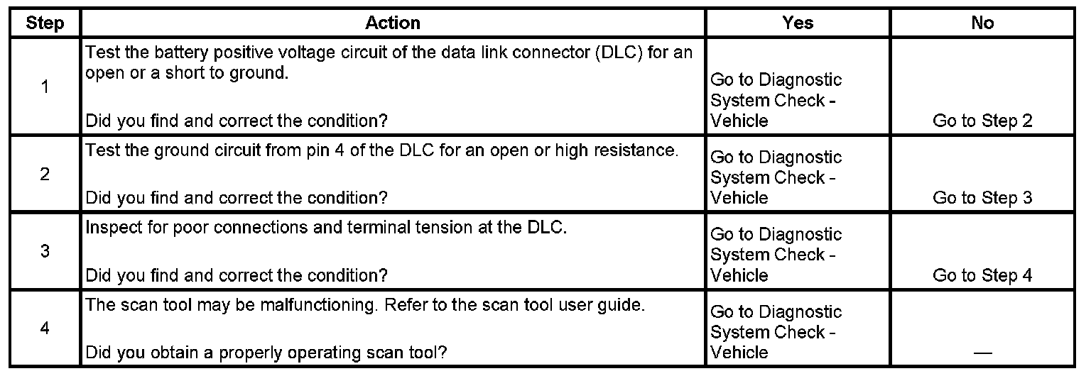 4. If the battery positive voltage and ground circuits of the DLC are functioning properly. The malfunction must be due to the scan tool.