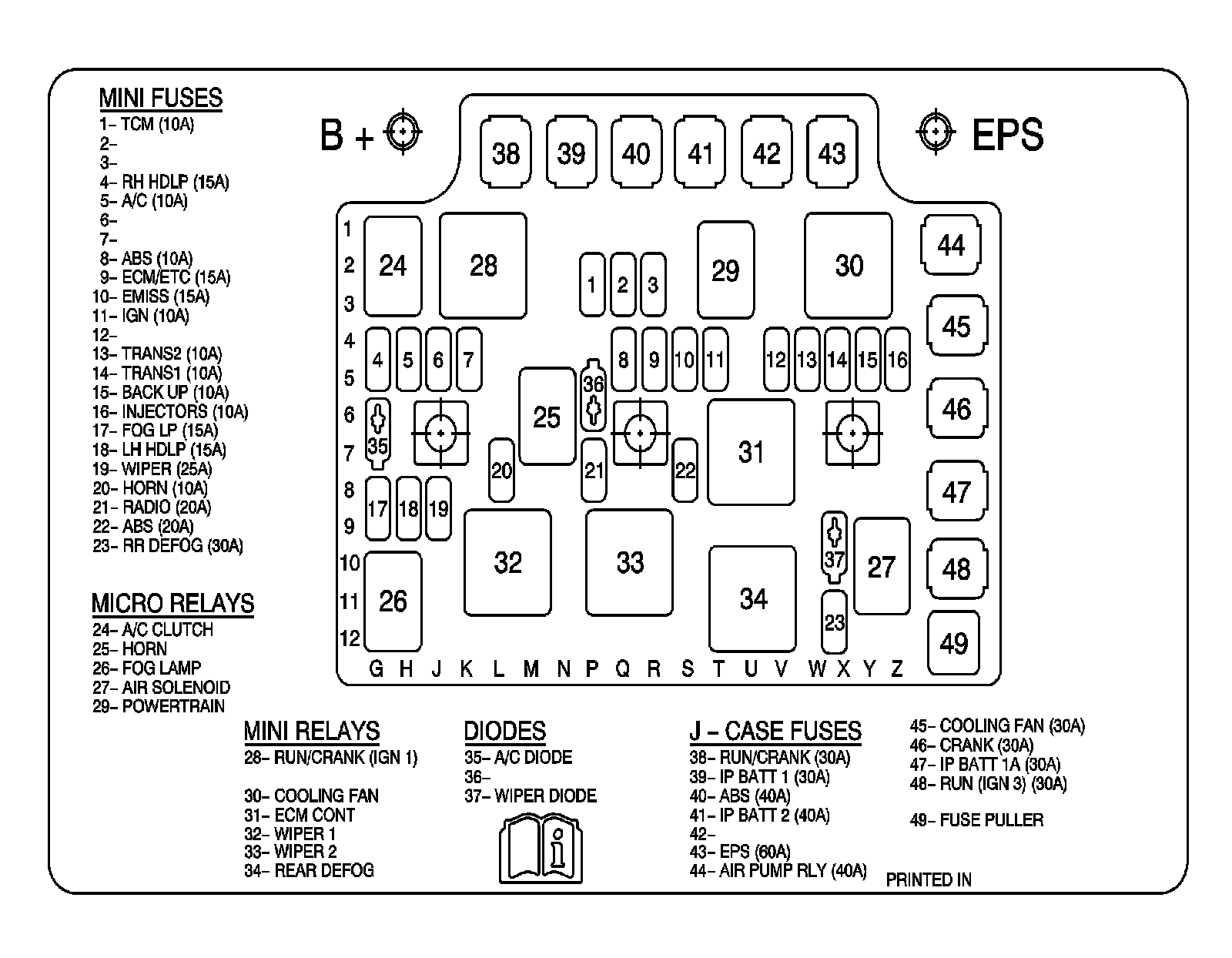 Fuse Block - Underhood Label (2.2L, 2.4L)