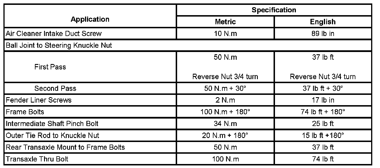 Fastener Tightening Specifications