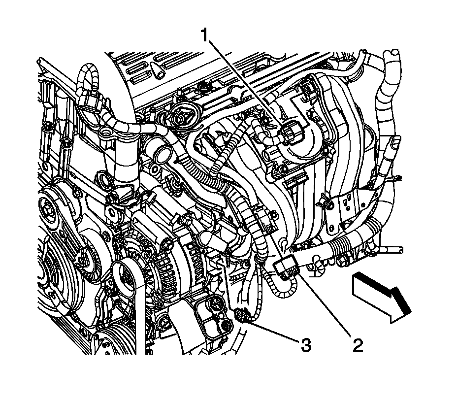 4. Disconnect the engine harness electrical connector (3) from the generator.