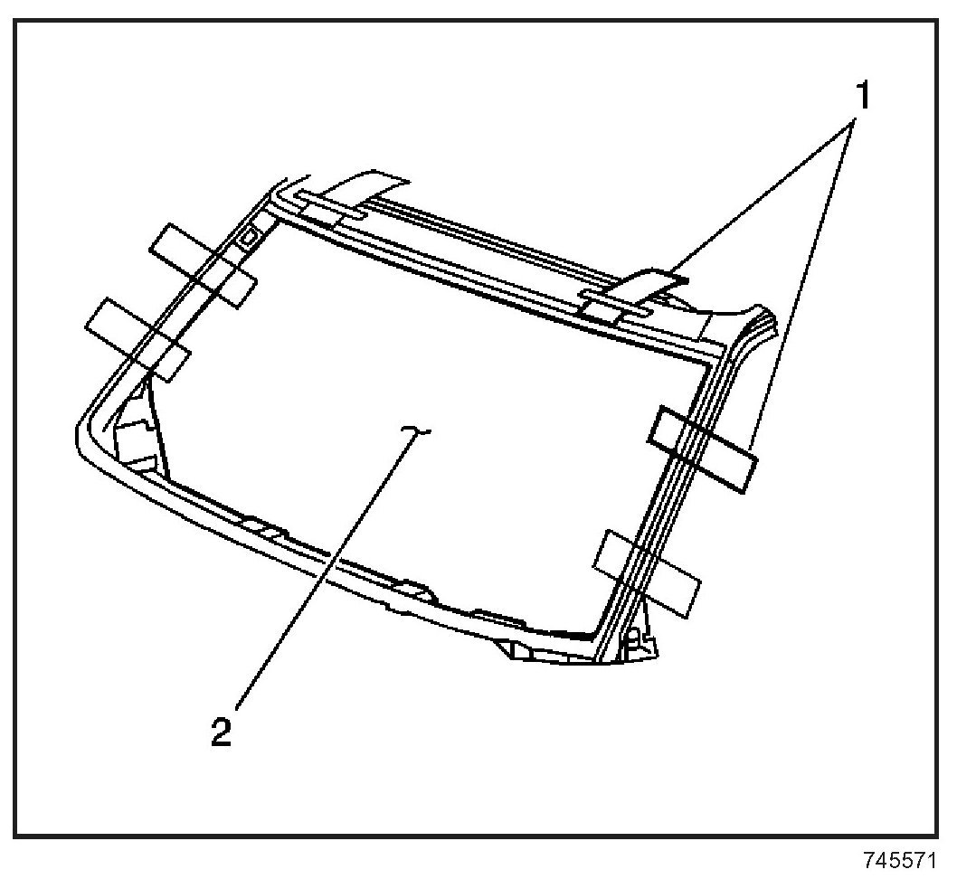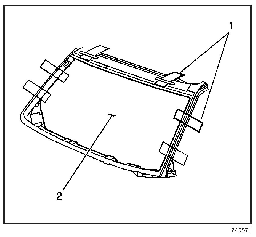 25. With the aid of an assistant, place the window in the opening. If installing a windshield, place the windshield on the lower supports (2), if equipped.