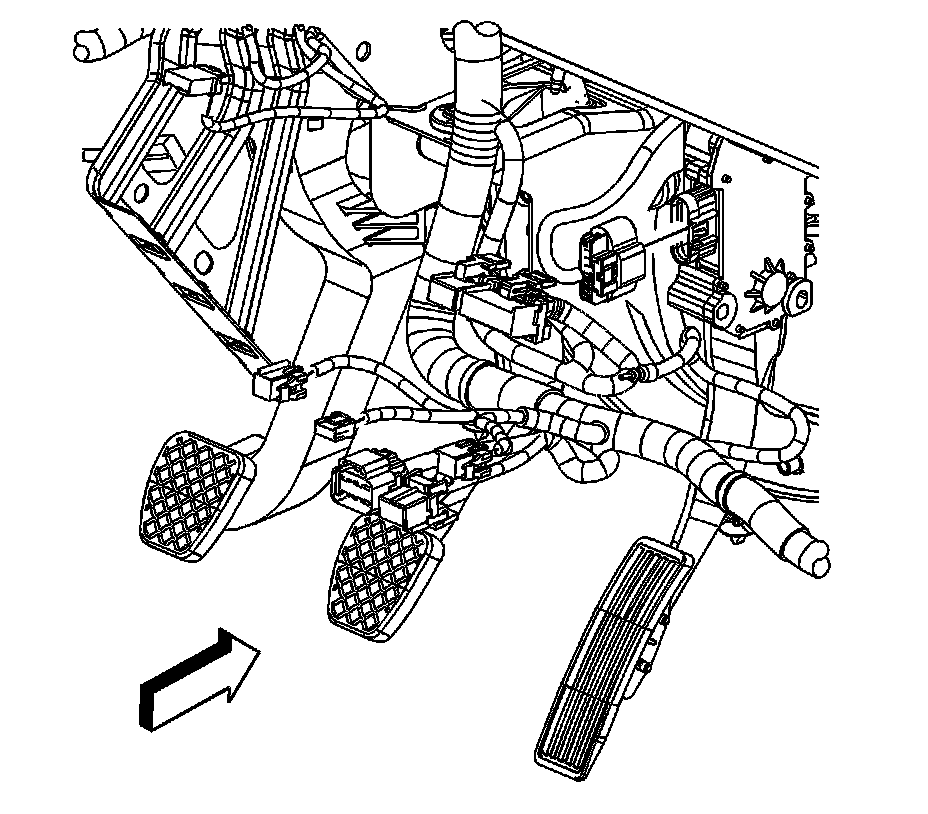 2. Disconnect the instrument panel (I/P) wiring harness electrical connector from the accelerator pedal position (APP) sensor.