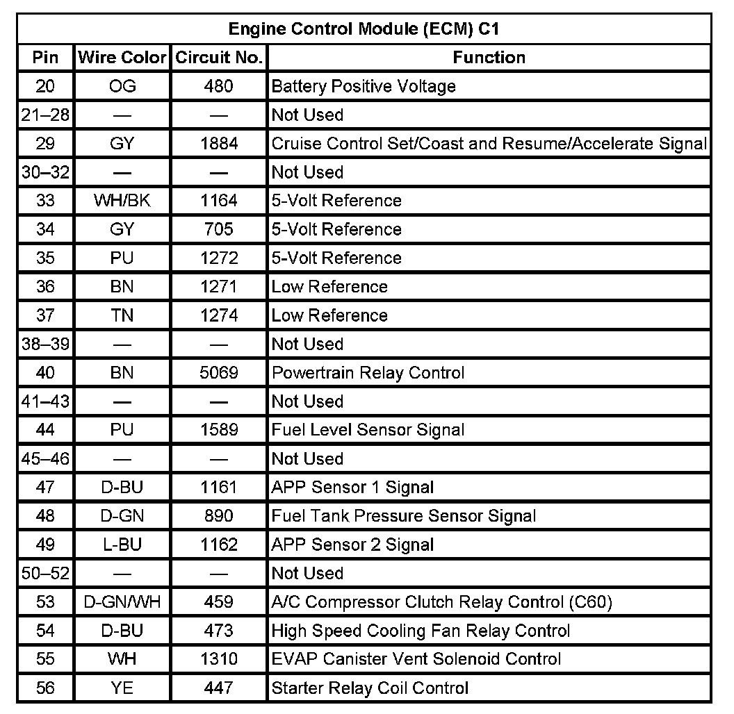 Engine Control Module (ECM) C1 (Pin 20 To 56):