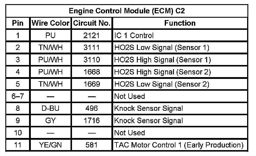 Engine Control Module (ECM) C2 (Pin 1 To 11):