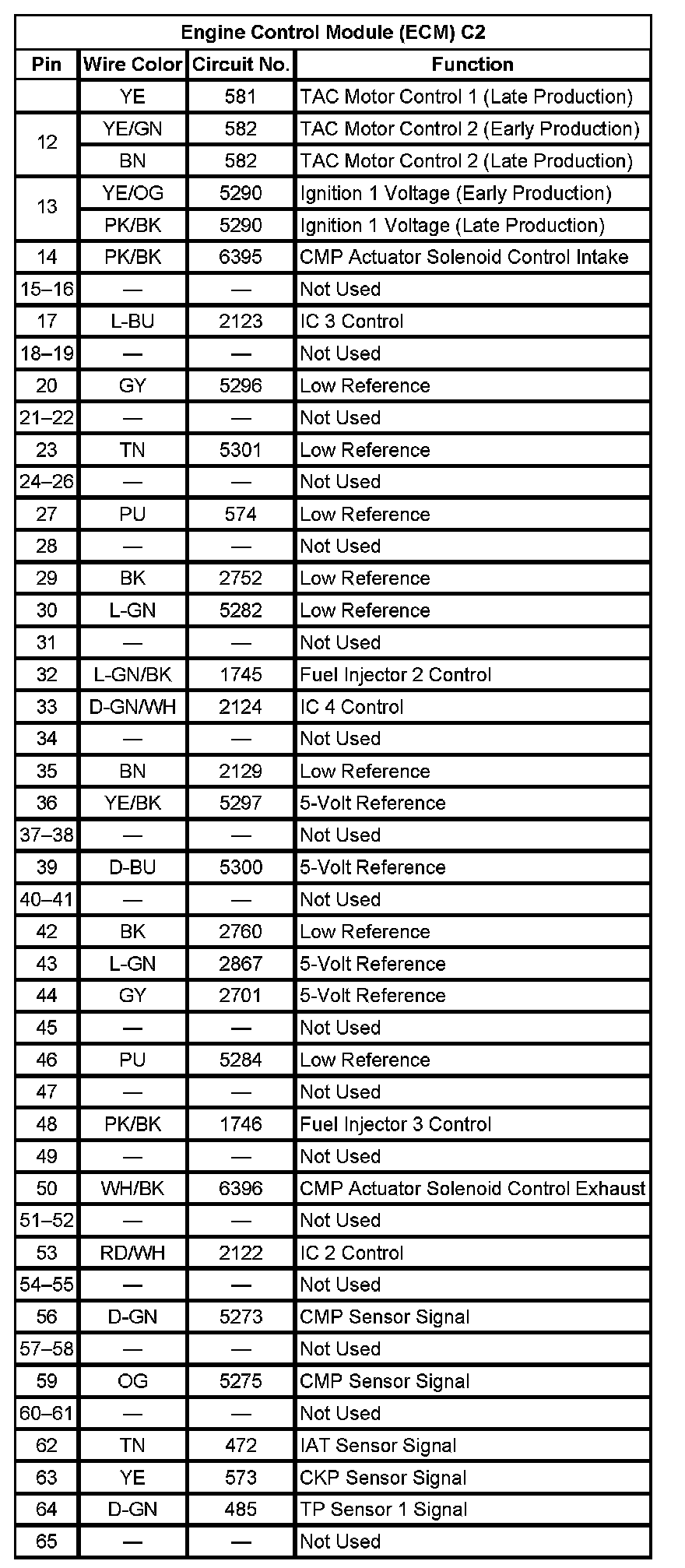 Engine Control Module (ECM) C2 (Pin 12 To 65):